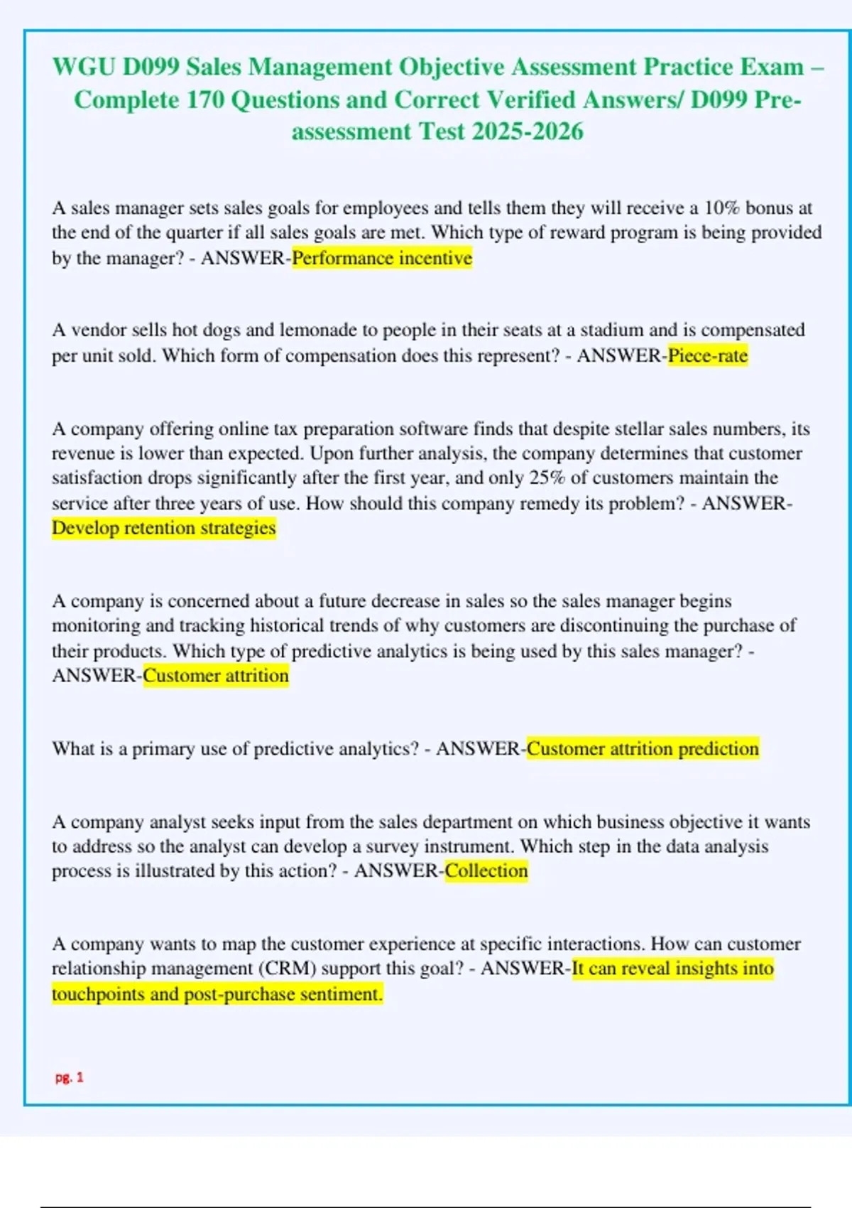 Complete 170 Questions and Correct Verified Answers/ D099 Pre-