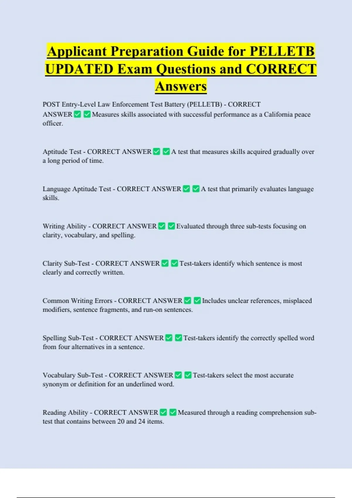 POST Entry-Level Law Enforcement Test Battery (PELLETB) - CORRECT