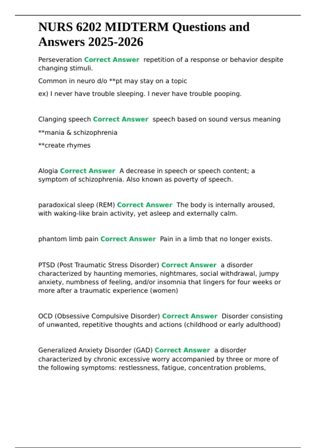 Generalized Anxiety Disorder (GAD) Correct Answer a disorder
