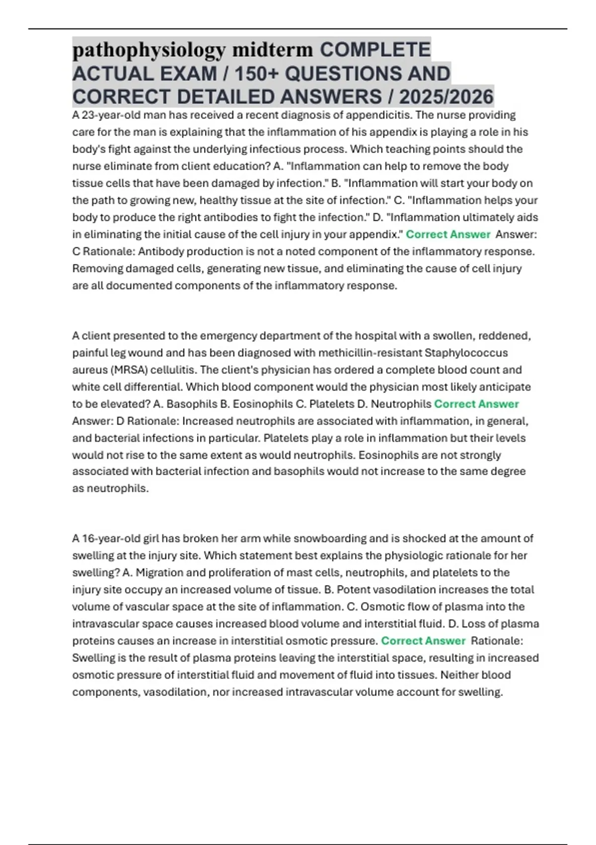 pathophysiology midterm COMPLETE ACTUAL EXAM 150+ QUESTIONS AND CORRECT DETAILED