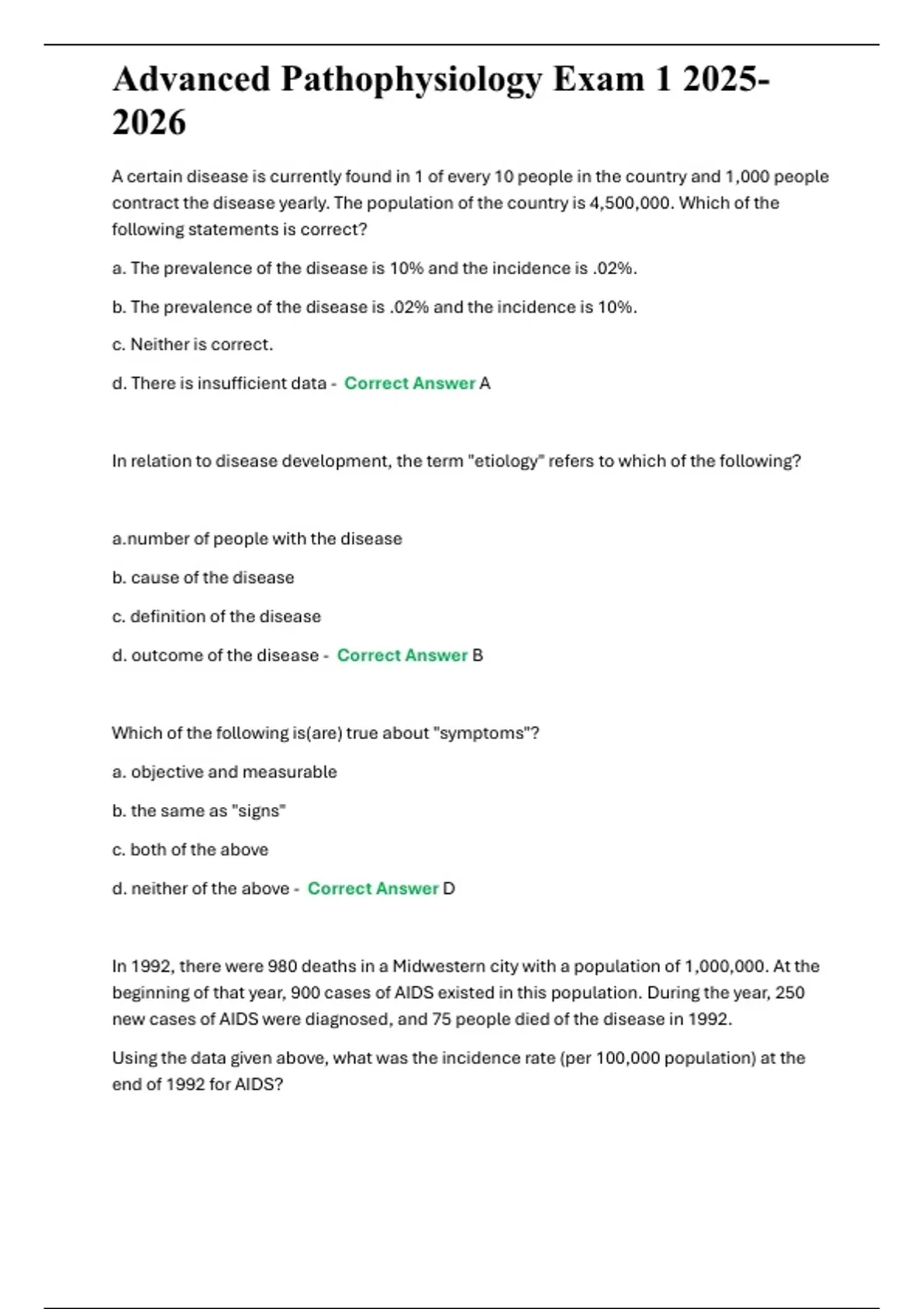 d. outcome of the disease - Correct Answer B