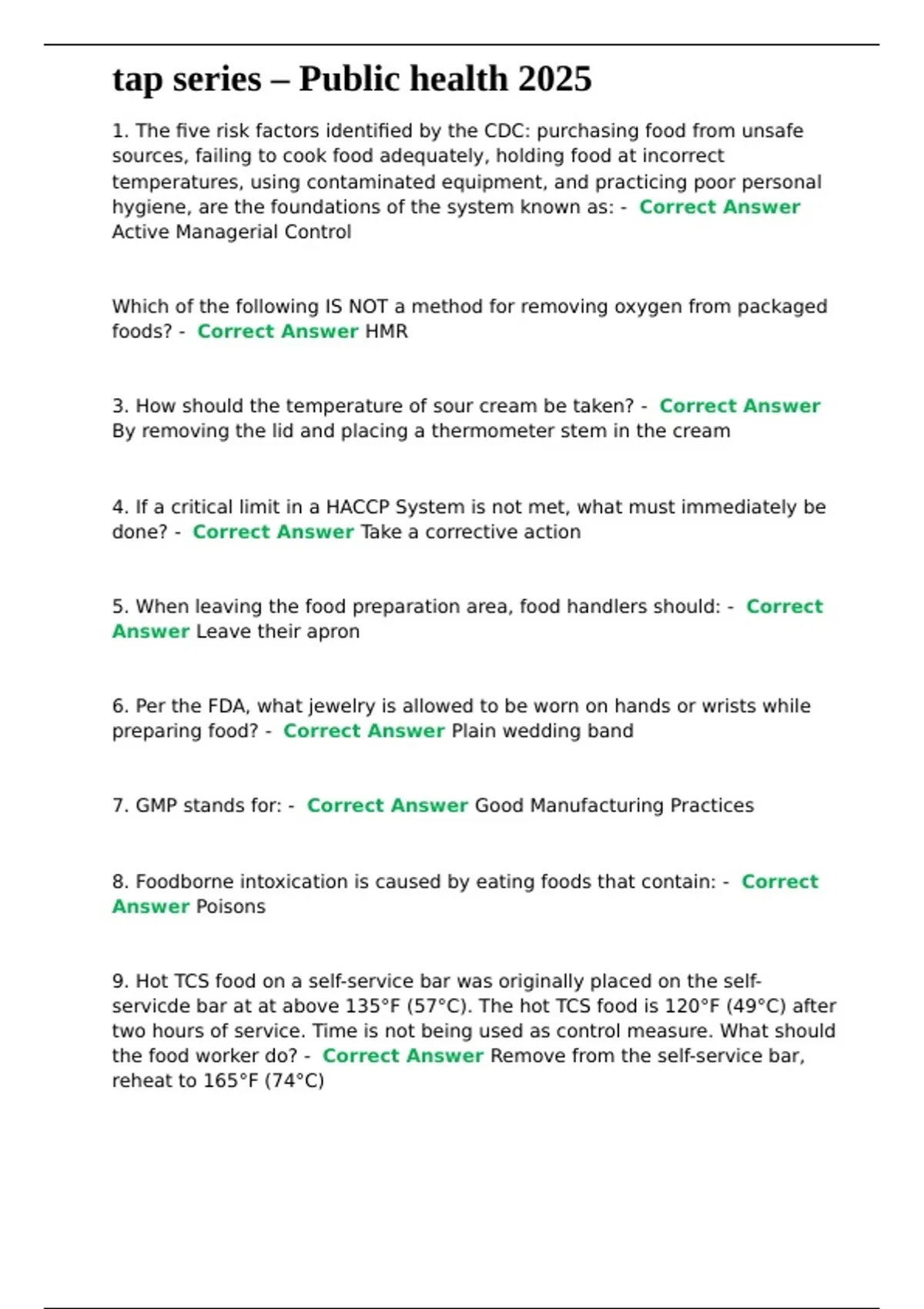 7. GMP stands for: - Correct Answer Good Manufacturing Practices