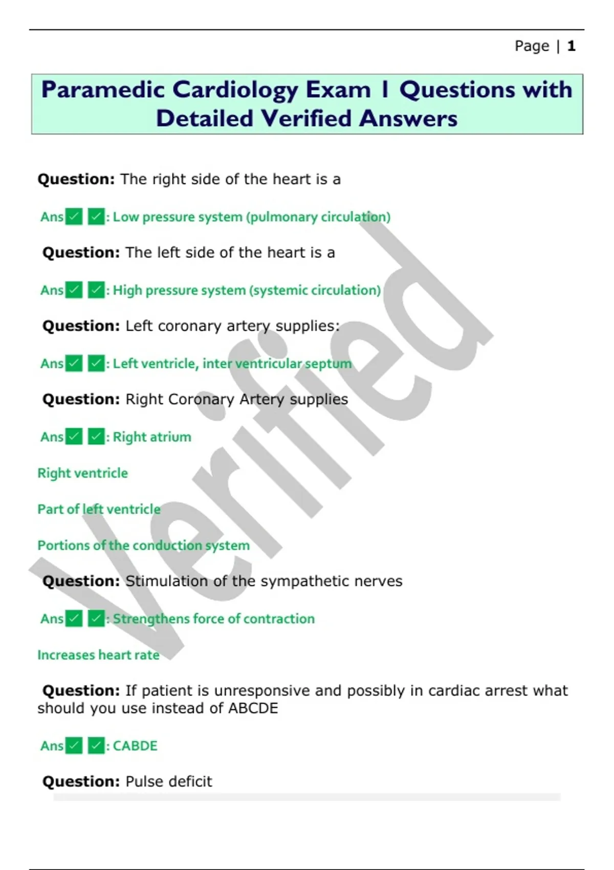 Paramedic Cardiology Exam 1 Questions with Detailed Verified Answers Paramedic Cardiology Exam 1 Questions with Detailed Verified Answers