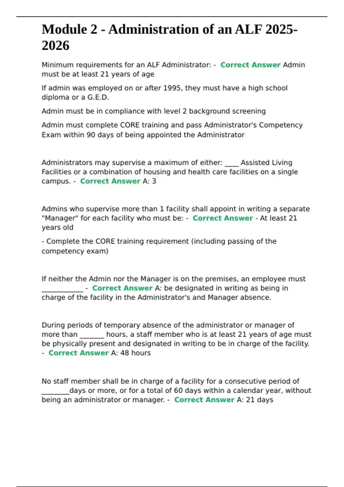 , Module 2 - Administration of an ALF 2025-