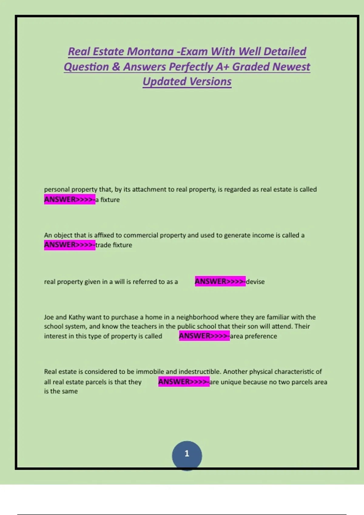 Real Estate Montana -Exam With Well Detailed