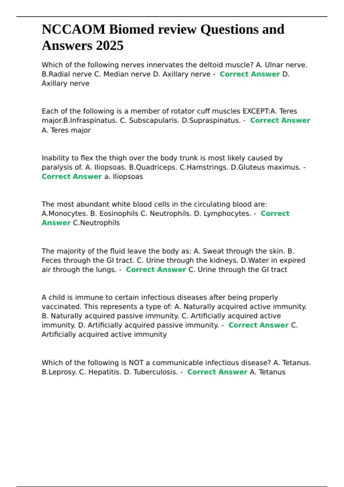 NCCAOM Biomed review Questions and Answers 2025