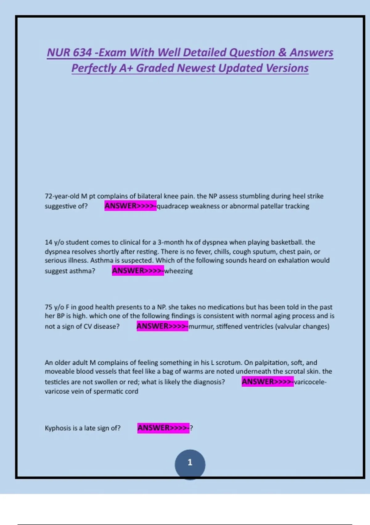 NUR 634 -Exam With Well Detailed Question & Answers Perfectly A+ Graded Newest Updated Versions