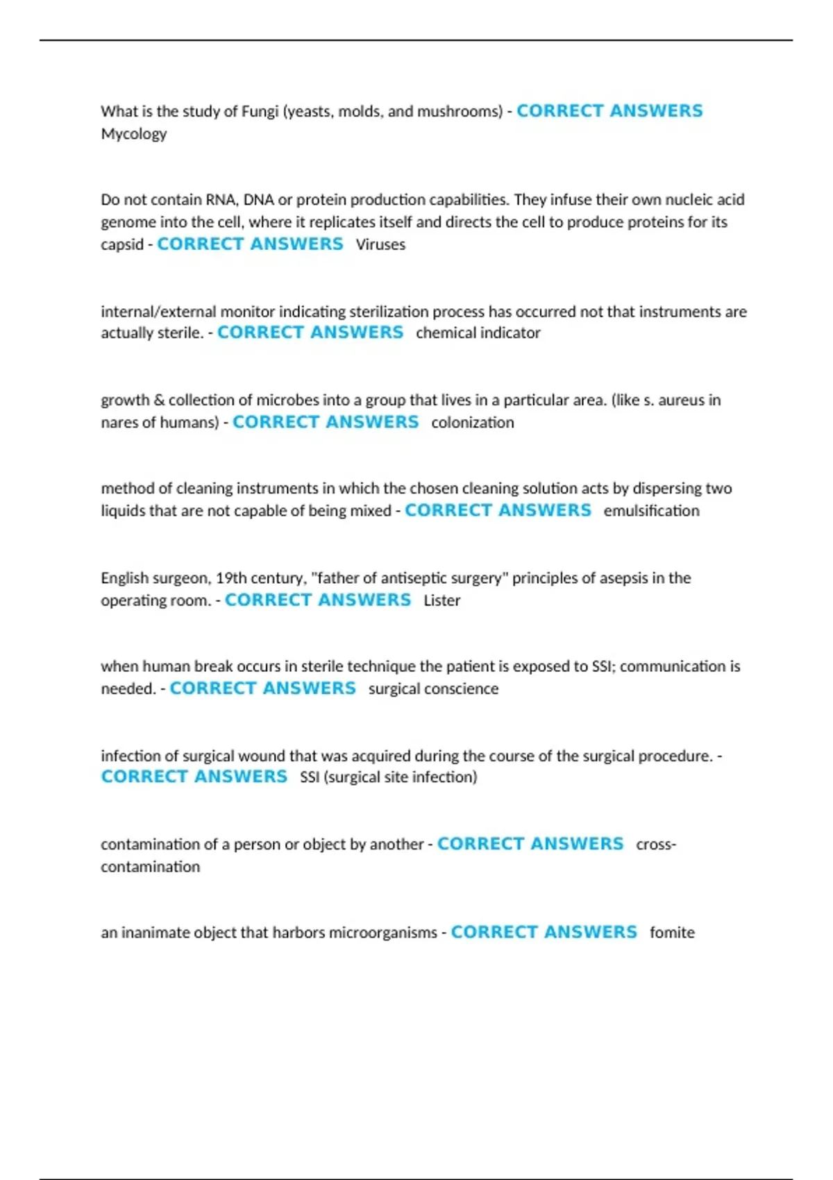 CORRECT ANSWERS Mycobacterium tuberculosis