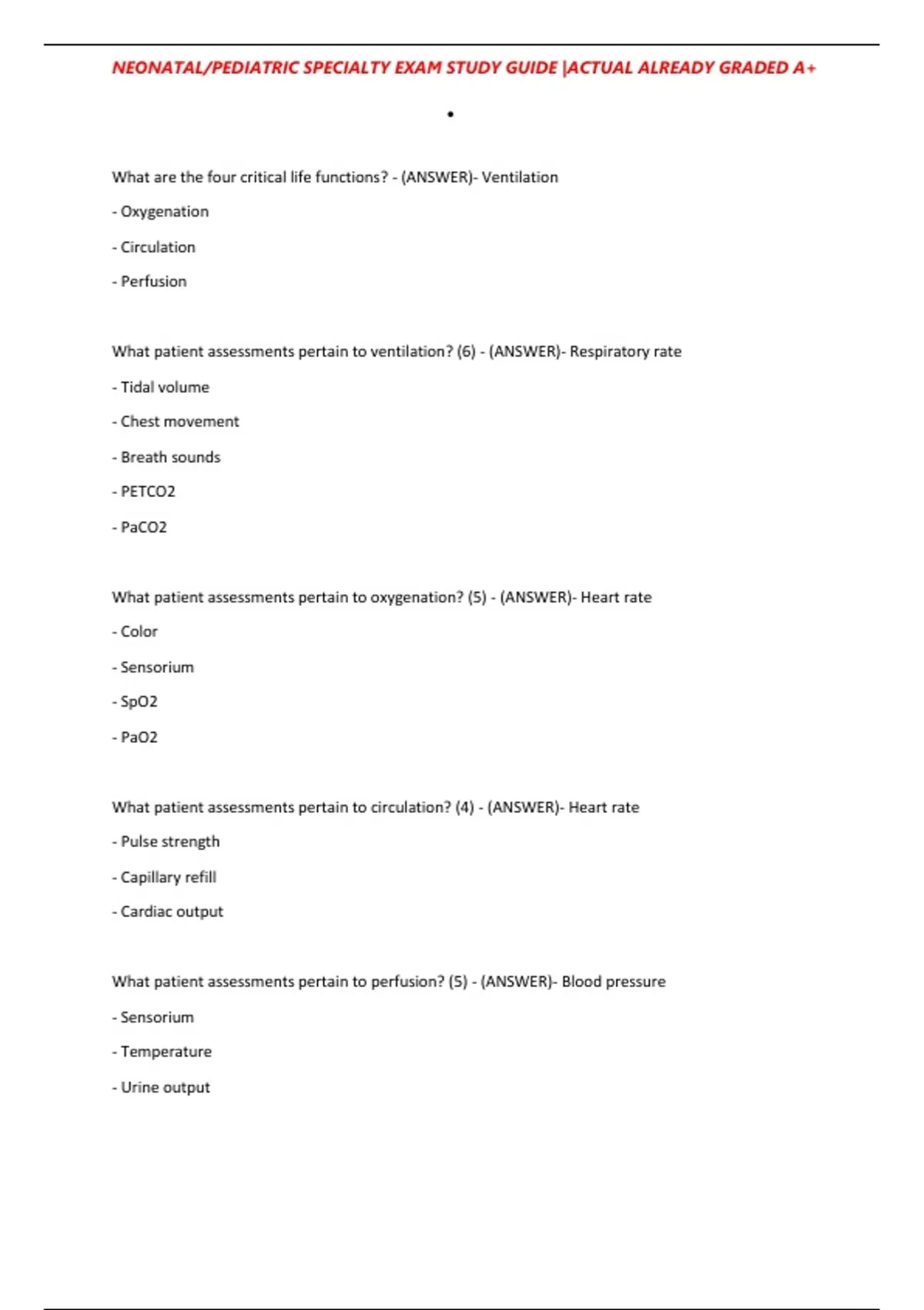 NEONATAL/PEDIATRIC SPECIALTY EXAM STUDY GUIDE |ACTUAL ALREADY GRADED A+