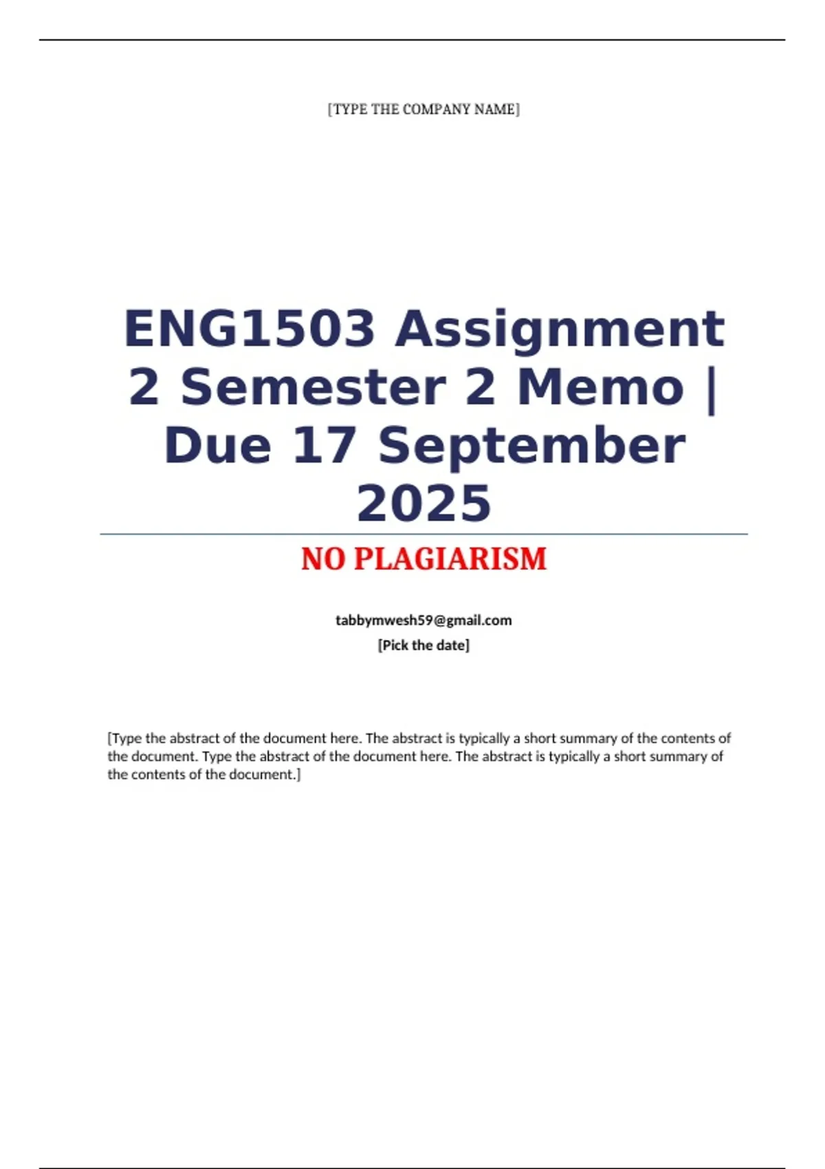 ENG1503 Assignment 2 Semester 2 Memo | Due 17 September 2025. THREE