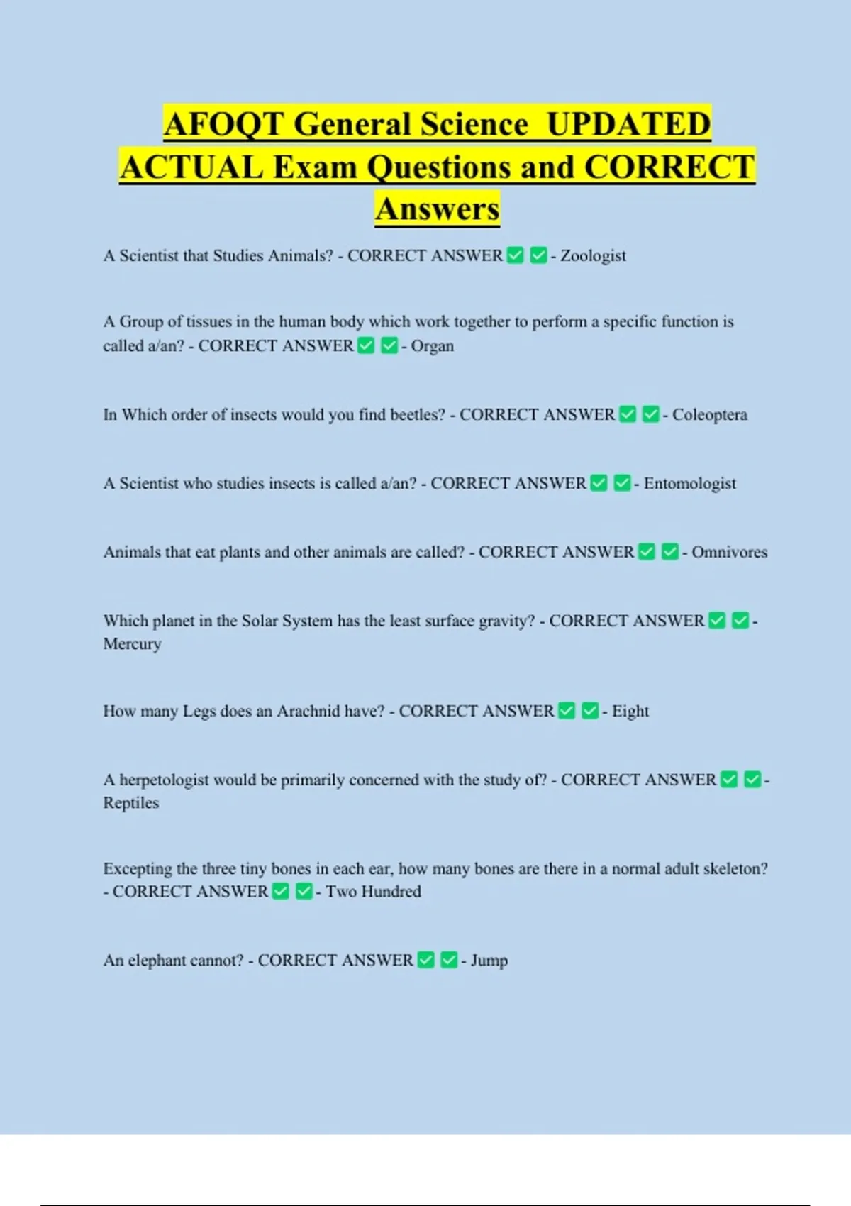 AFOQT General Science UPDATED ACTUAL Exam Questions and CORRECT Answers