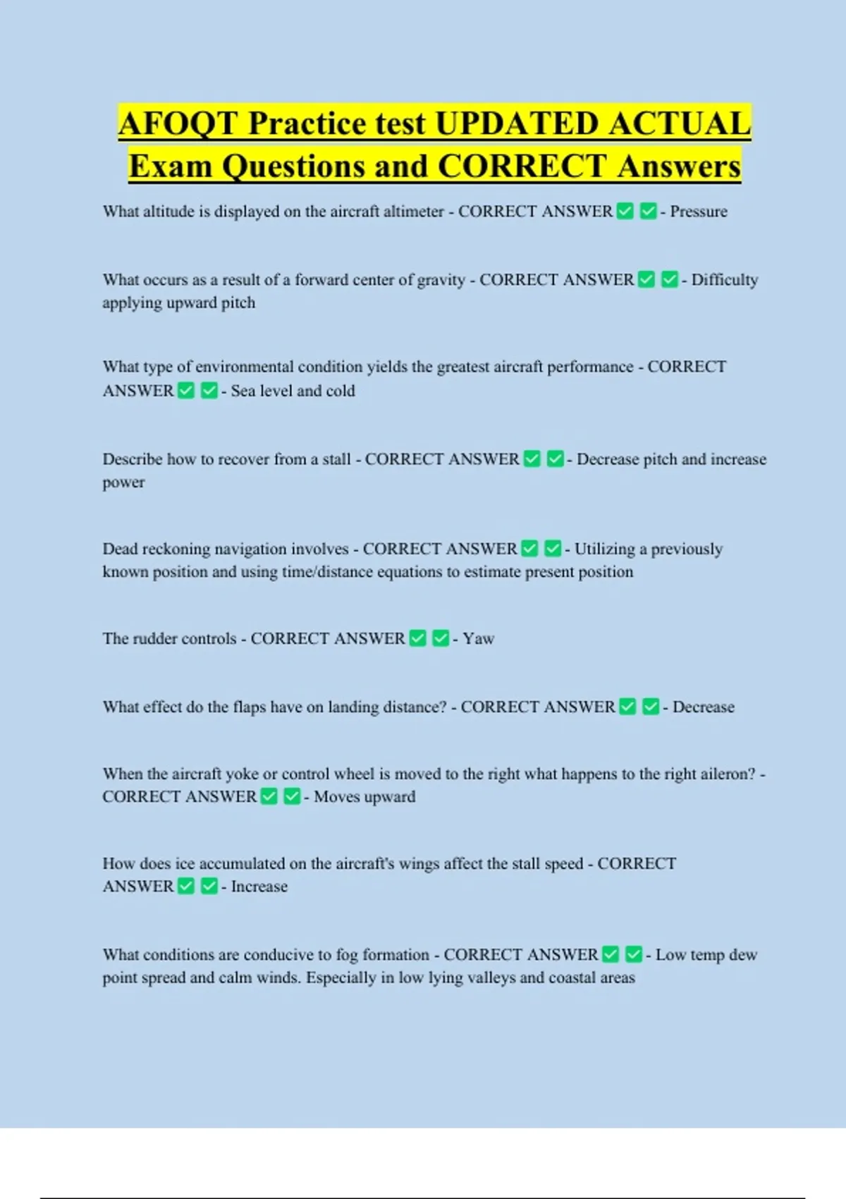 AFOQT Practice test UPDATED ACTUAL