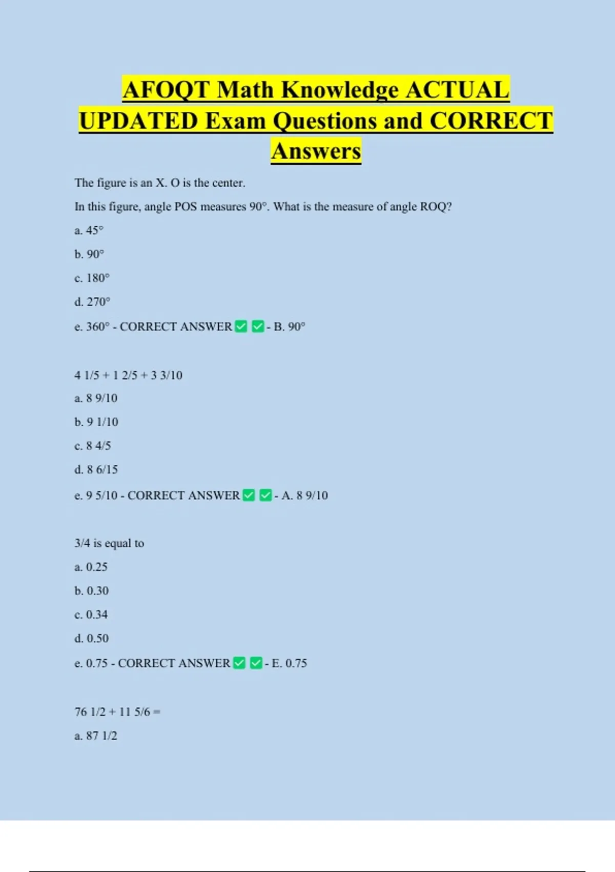 AFOQT Math Knowledge ACTUAL UPDATED Exam Questions and CORRECT Answers