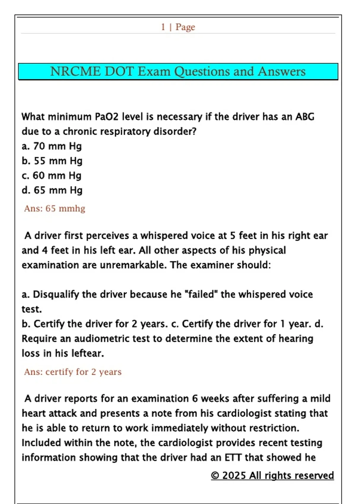 b. Certify the driver for 2years. c. Certify the driver for 1 year. d.