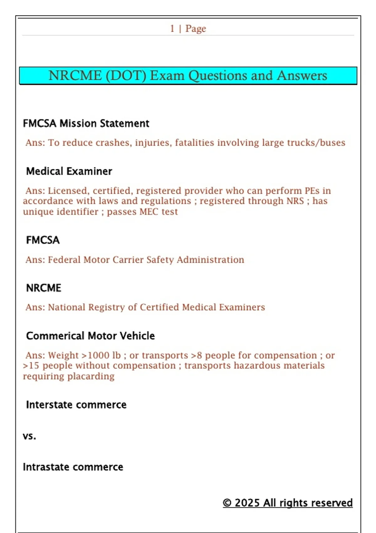 NRCME (DOT) Exam Questions and Answers NRCME (DOT) Exam Questions and Answers