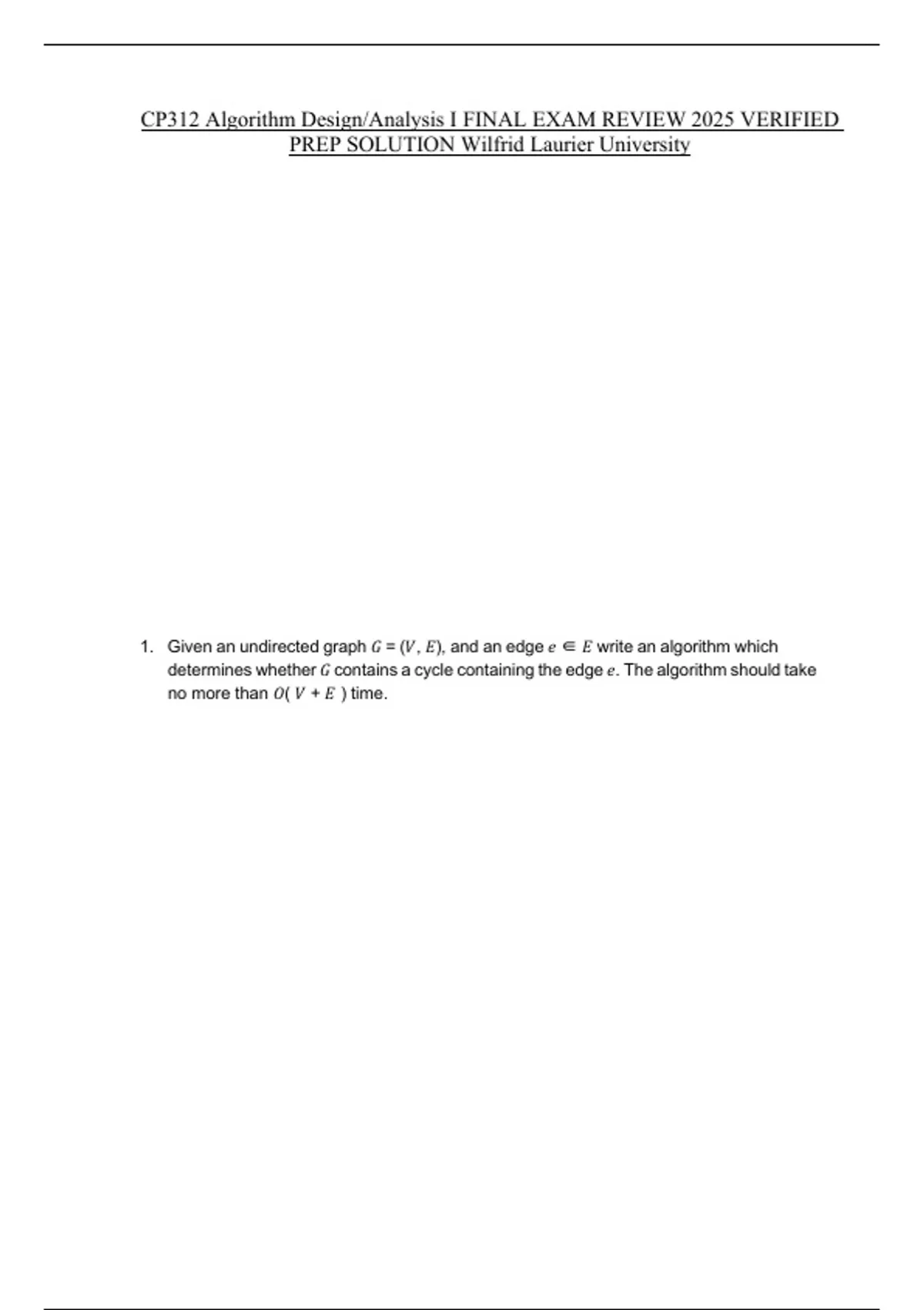 CP312 Algorithm Design/Analysis I FINAL EXAM REVIEW 2025 VERIFIED PREP SOLUTION Wilfrid Laurier University