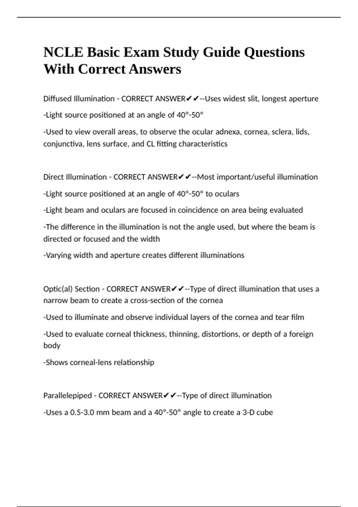 NCLE Basic Exam Study Guide Questions With Correct Answers