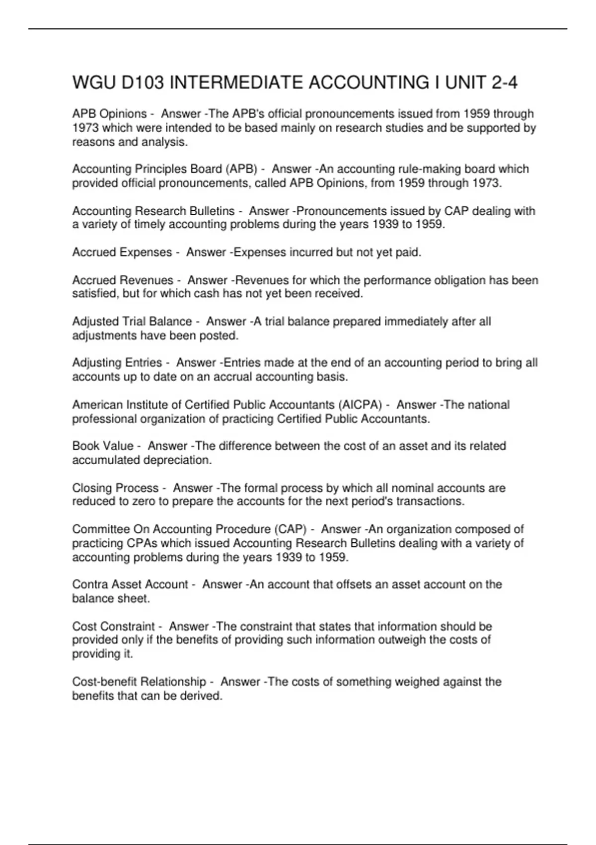 WGU D103 INTERMEDIATE ACCOUNTING I UNIT 2-4