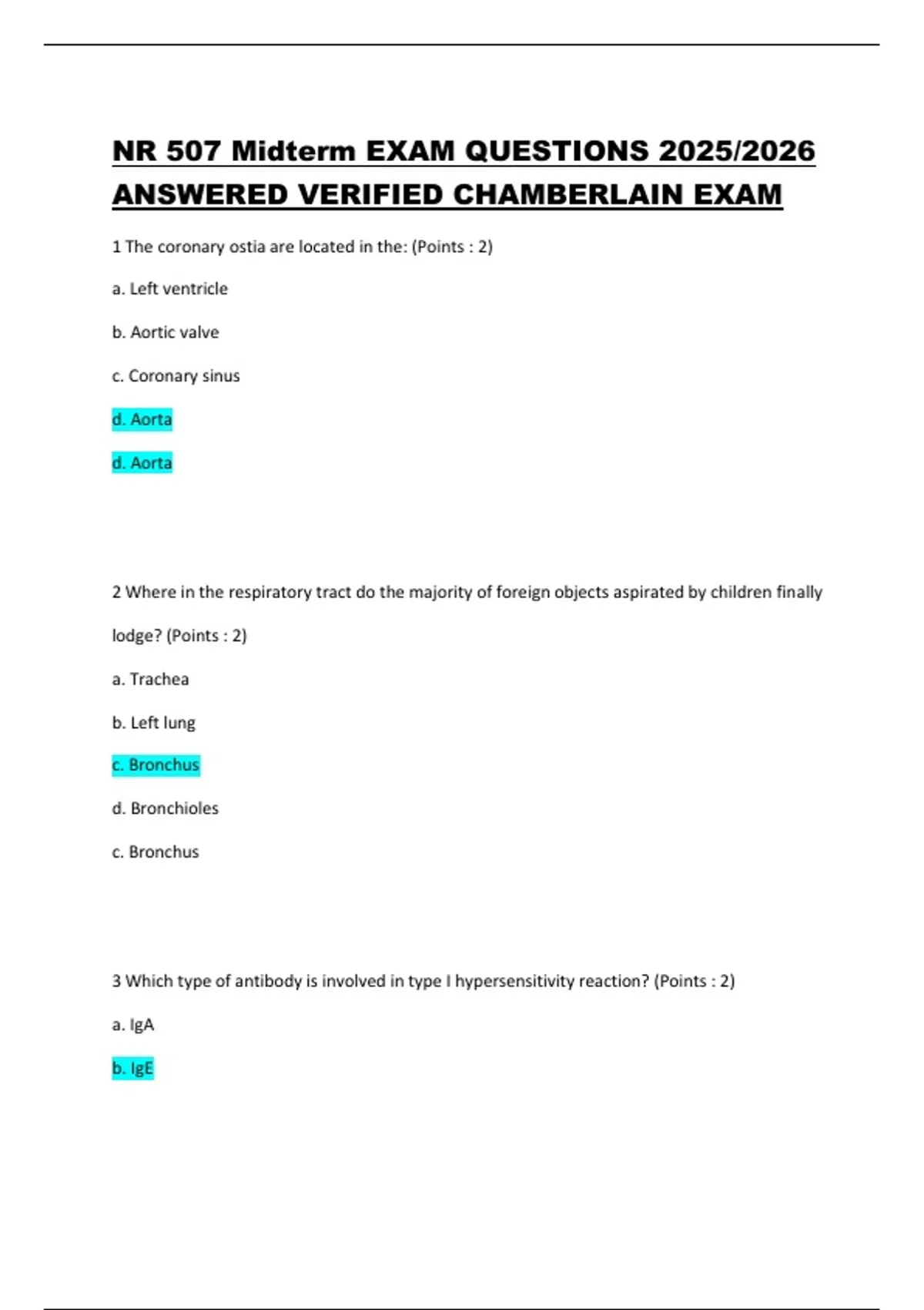ANSWERED VERIFIED CHAMBERLAIN EXAM