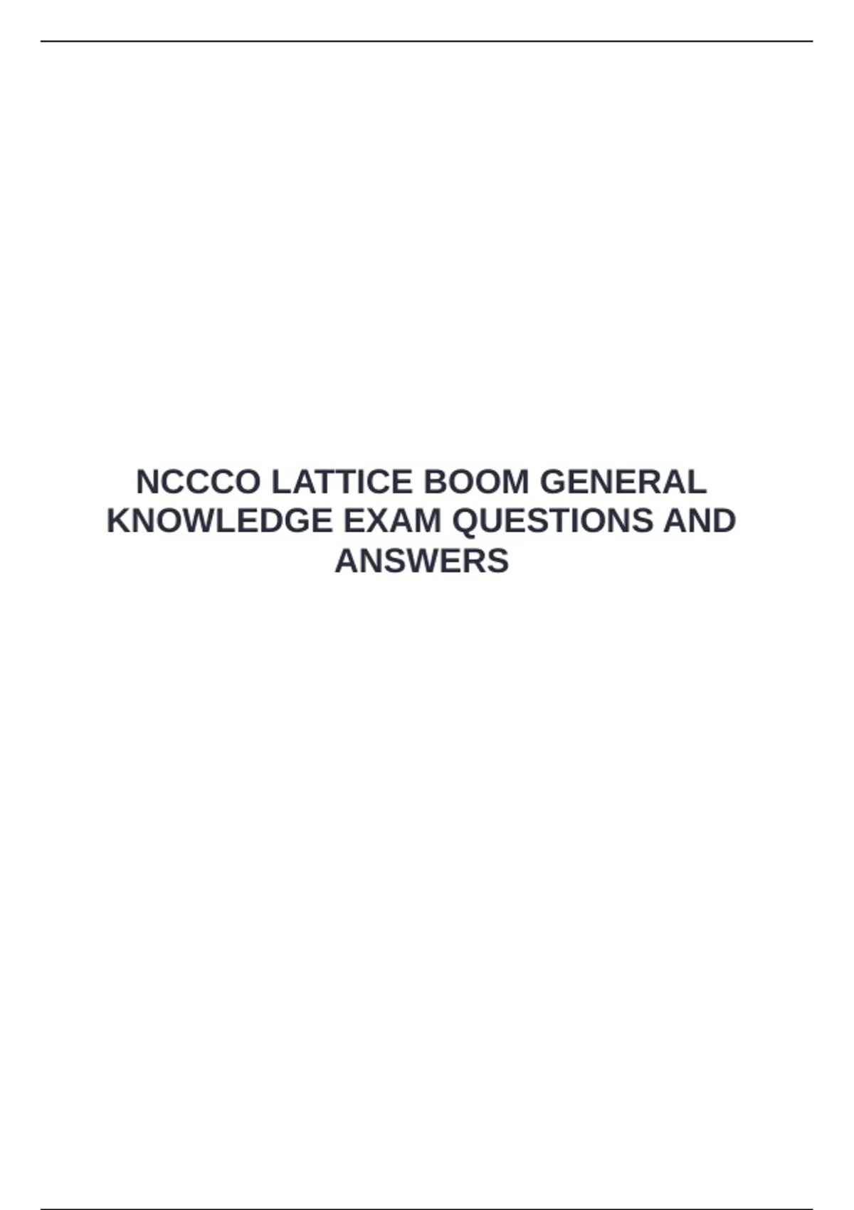 NCCCO LATTICE BOOM GENERAL KNOWLEDGE EXAM QUESTIONS AND ANSWERS