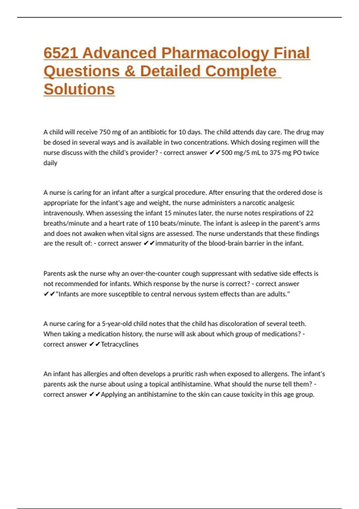 6521 Advanced Pharmacology Final Questions & Detailed Complete Solutions