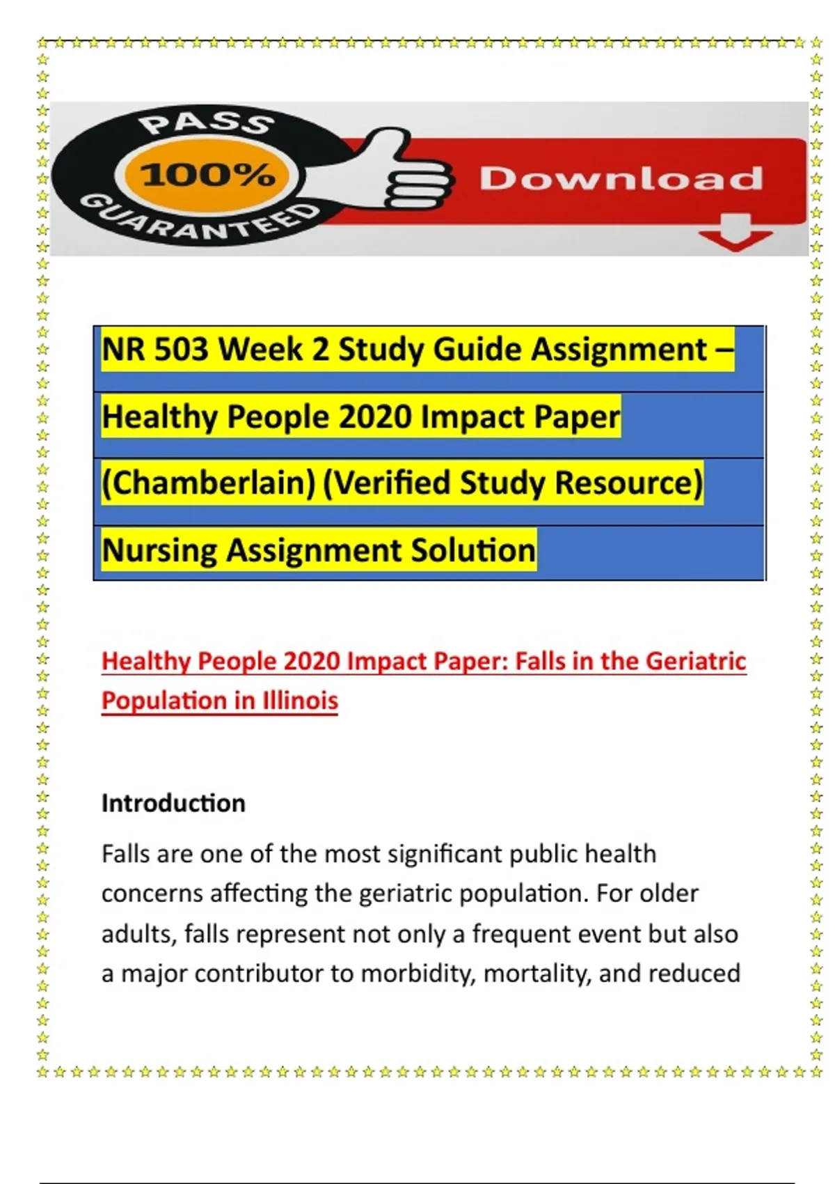 NR 503 Week 2 Study Guide – Healthy People 2020 Impact Paper (Chamberlain University) | Verified Nursing Assignment Solution 2024–2025