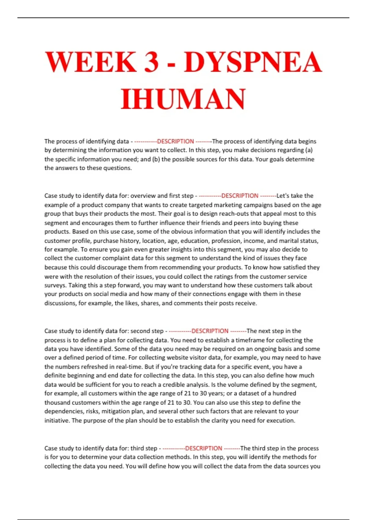 Case study to identify data for: overview and first step - -----------DESCRIPTION --------Let's take the