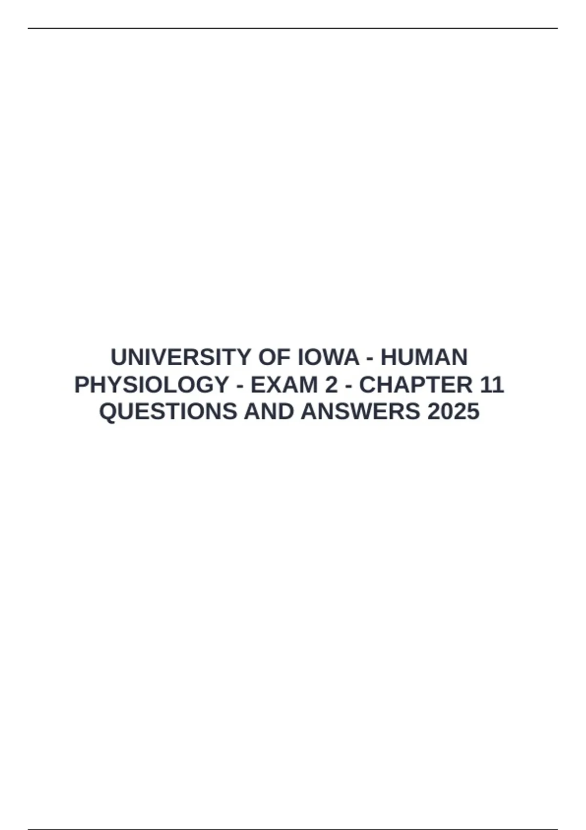UNIVERSITY OF IOWA - HUMAN PHYSIOLOGY - EXAM 2 - CHAPTER 11 QUESTIONS AND ANSWERS 2025