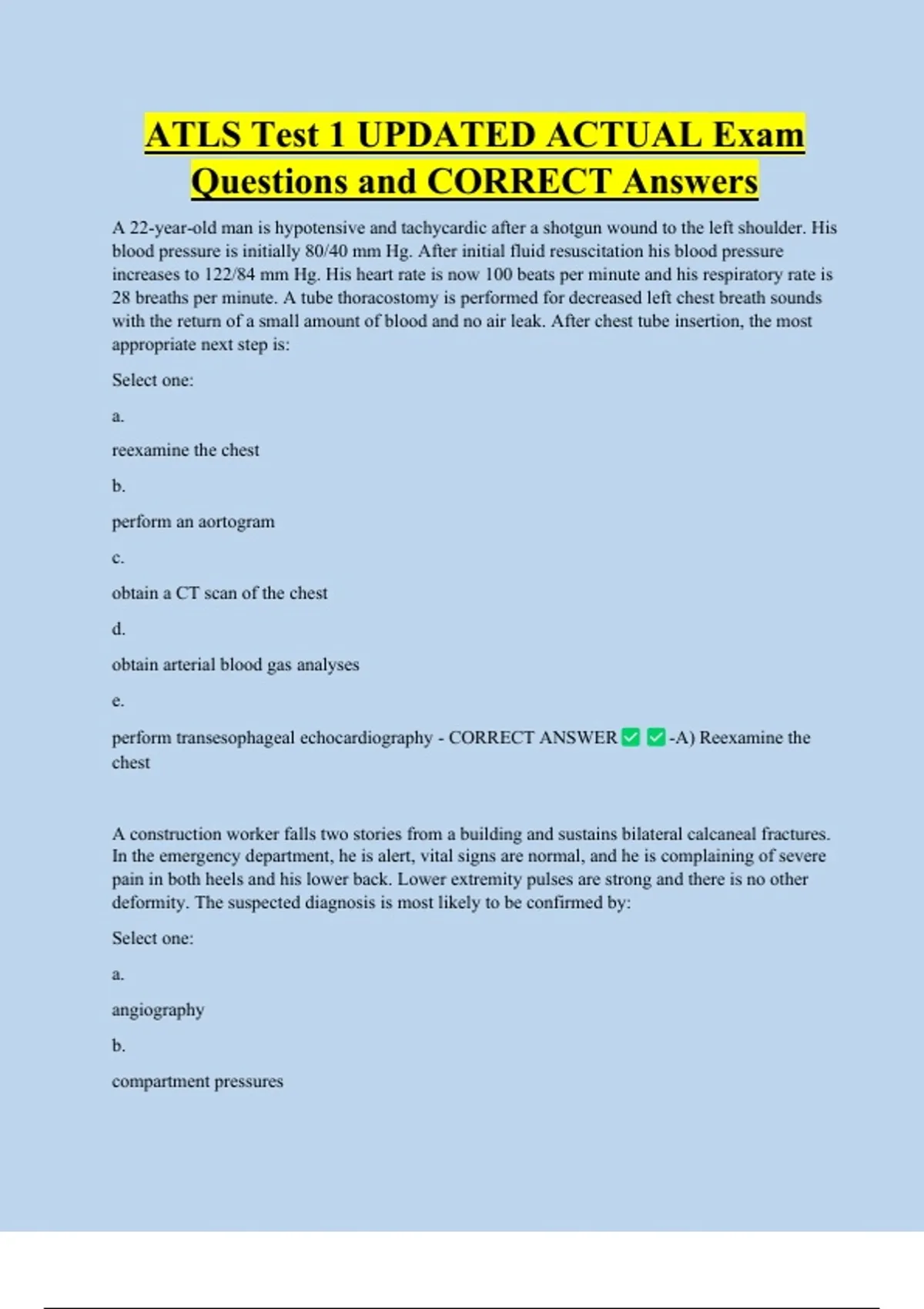 ATLS Test 1 UPDATED ACTUAL Exam Questions and CORRECT Answers