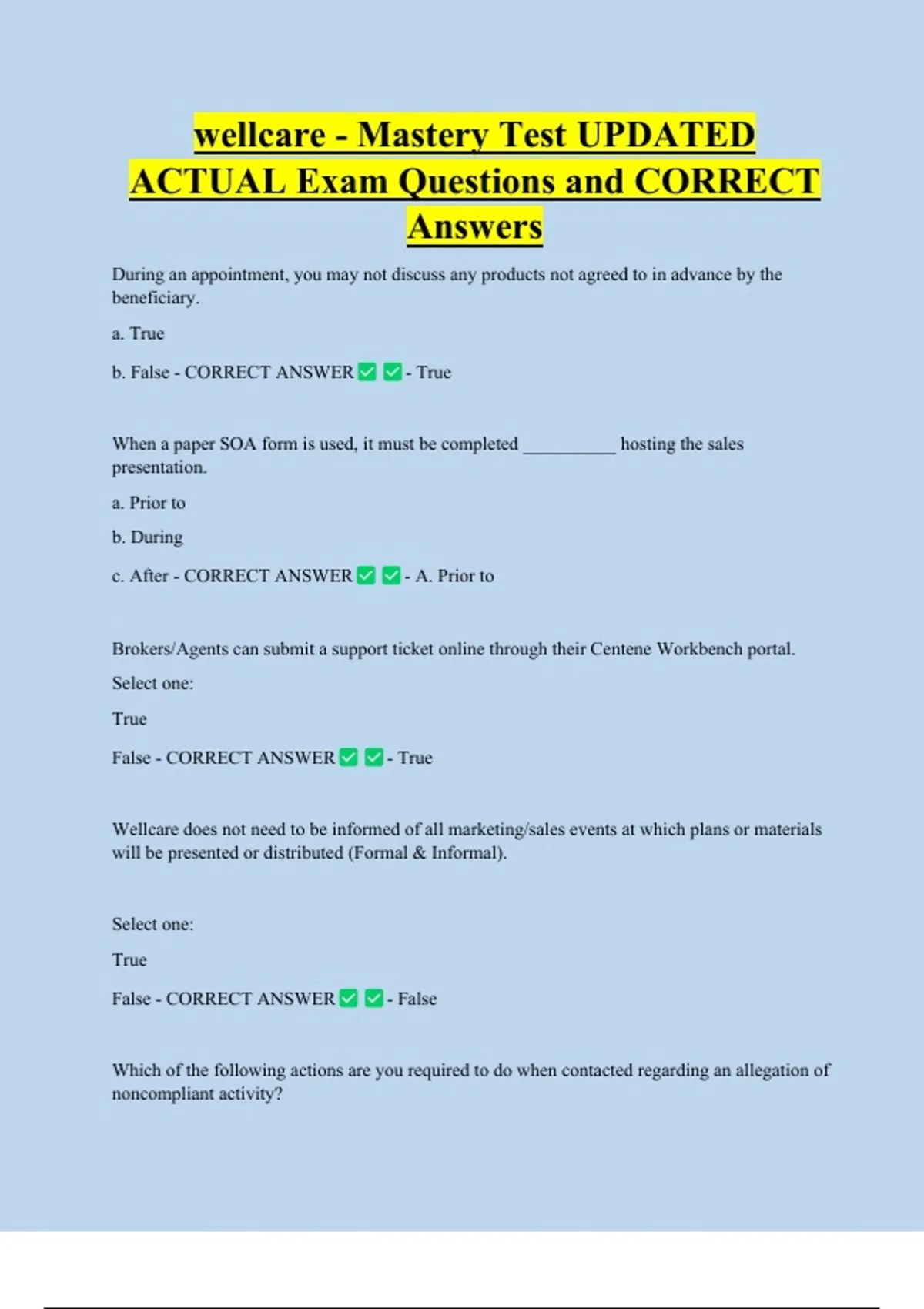 wellcare - Mastery Test UPDATED ACTUAL Exam Questions and CORRECT Answers