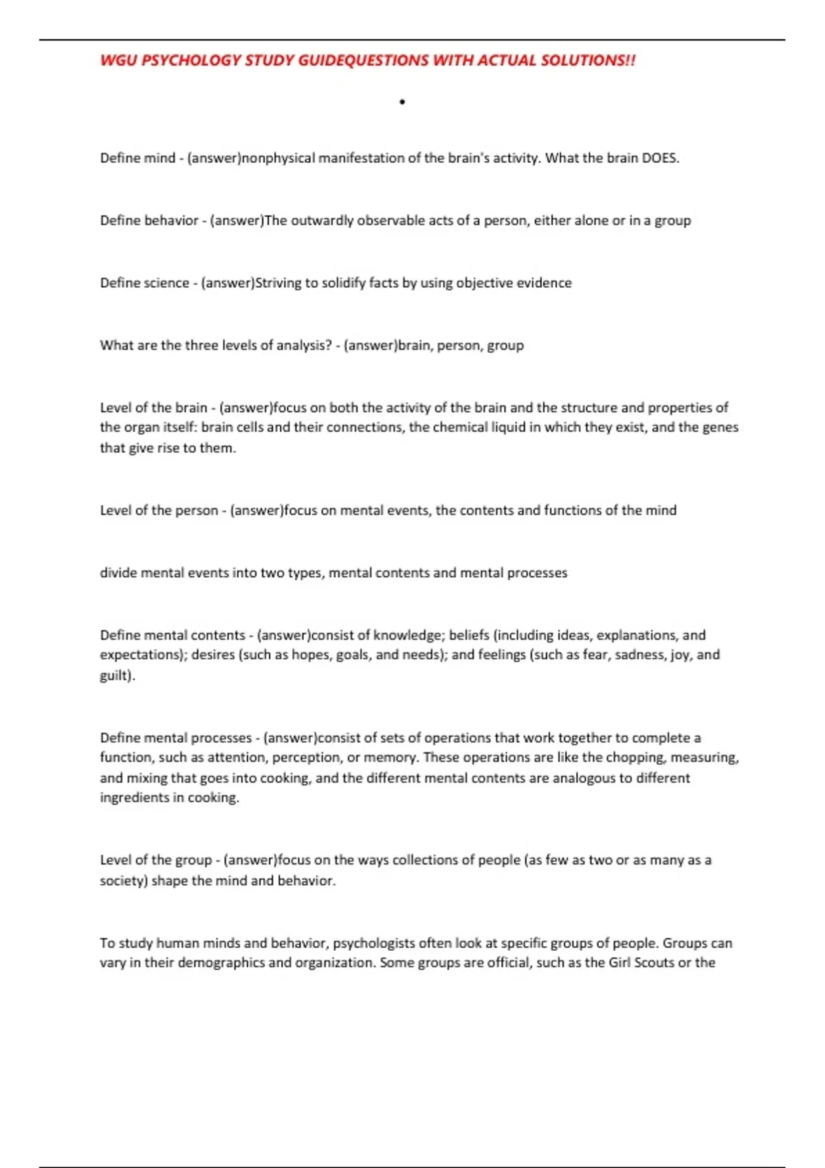 , WGU PSYCHOLOGY STUDY GUIDEQUESTIONS WITH ACTUAL SOLUTIONS!!