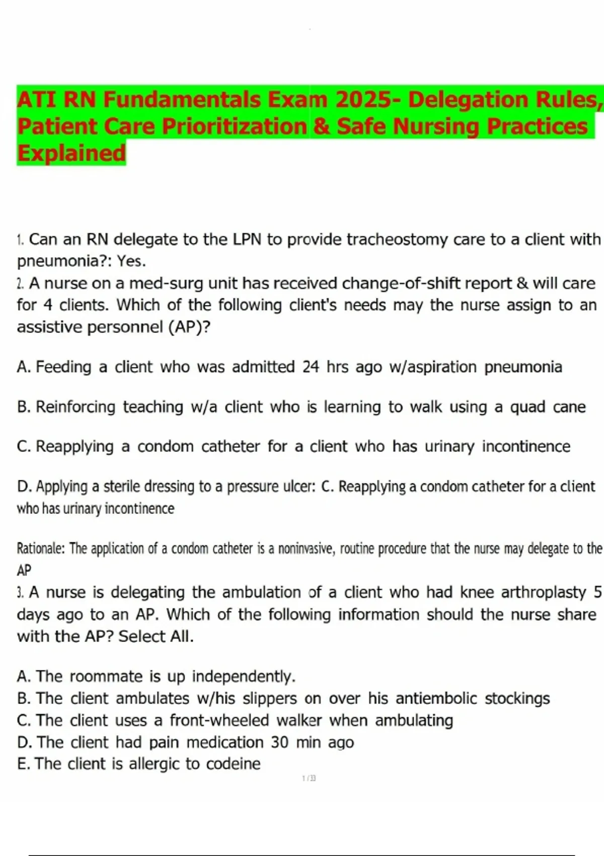 ATI RN Fundamentals Exam 2025- Delegation Rules, Patient Care Prioritization & Safe Nursing Practices E ATI RN Fundamentals Exam 2025- Delegation Rules, Patient Care Prioritization & Safe Nursing Practices E ATI RN Fundamentals Exam 2025- Delegation Rules, Patient Care Prioritization & Safe Nursing Practices E
