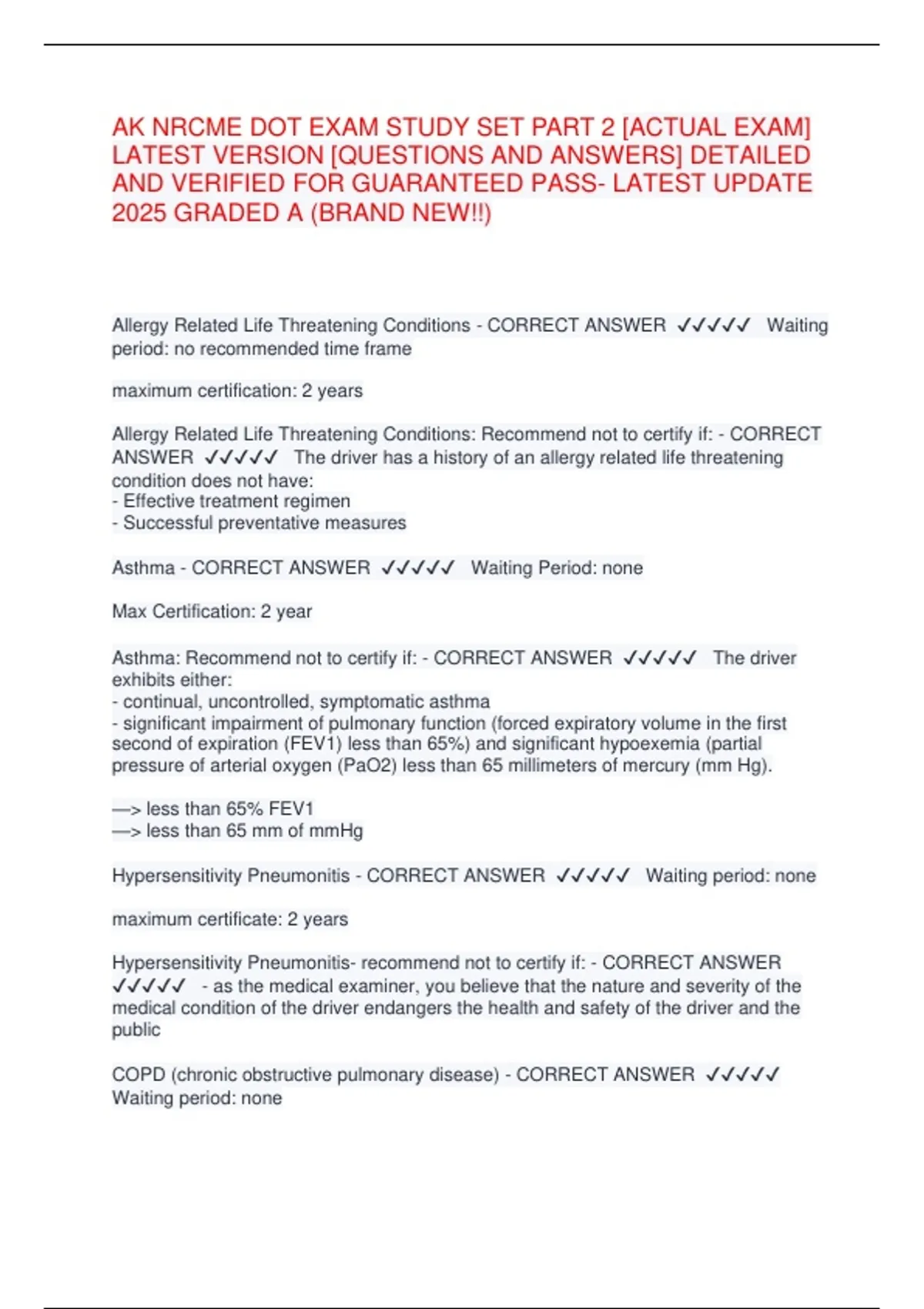 AK NRCME DOT EXAM STUDY SET PART 2 [ACTUAL EXAM]