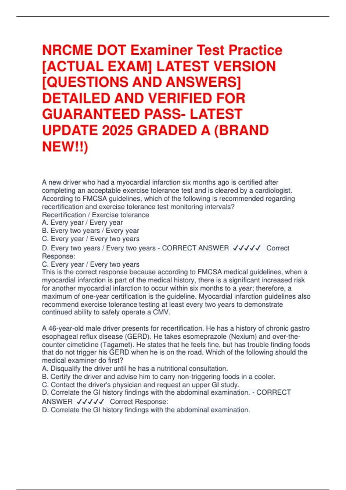 NRCME DOT Examiner Test Practice -ACTUAL EXAM- LATEST VERSION -QUESTIONS AND ANSWERS NRCME DOT Examiner Test Practice -ACTUAL EXAM- LATEST VERSION -QUESTIONS AND ANSWERS