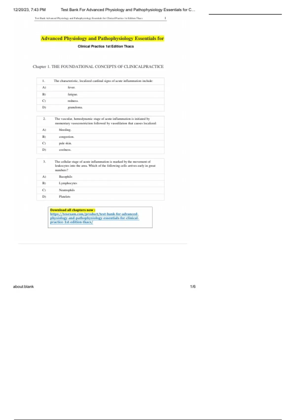 , 12/20/23, 7:43 PM Test Bank For Advanced Physiology and Pathophysiology Essentials for C…