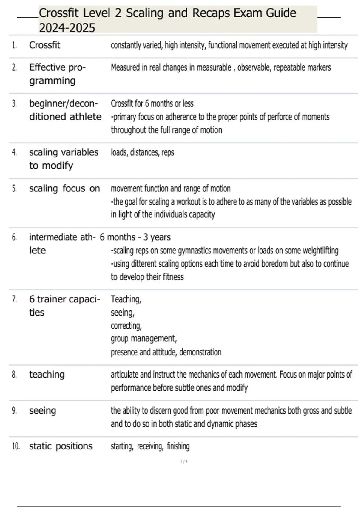Crossfit Level 2 Scaling and Recaps Exam Guide