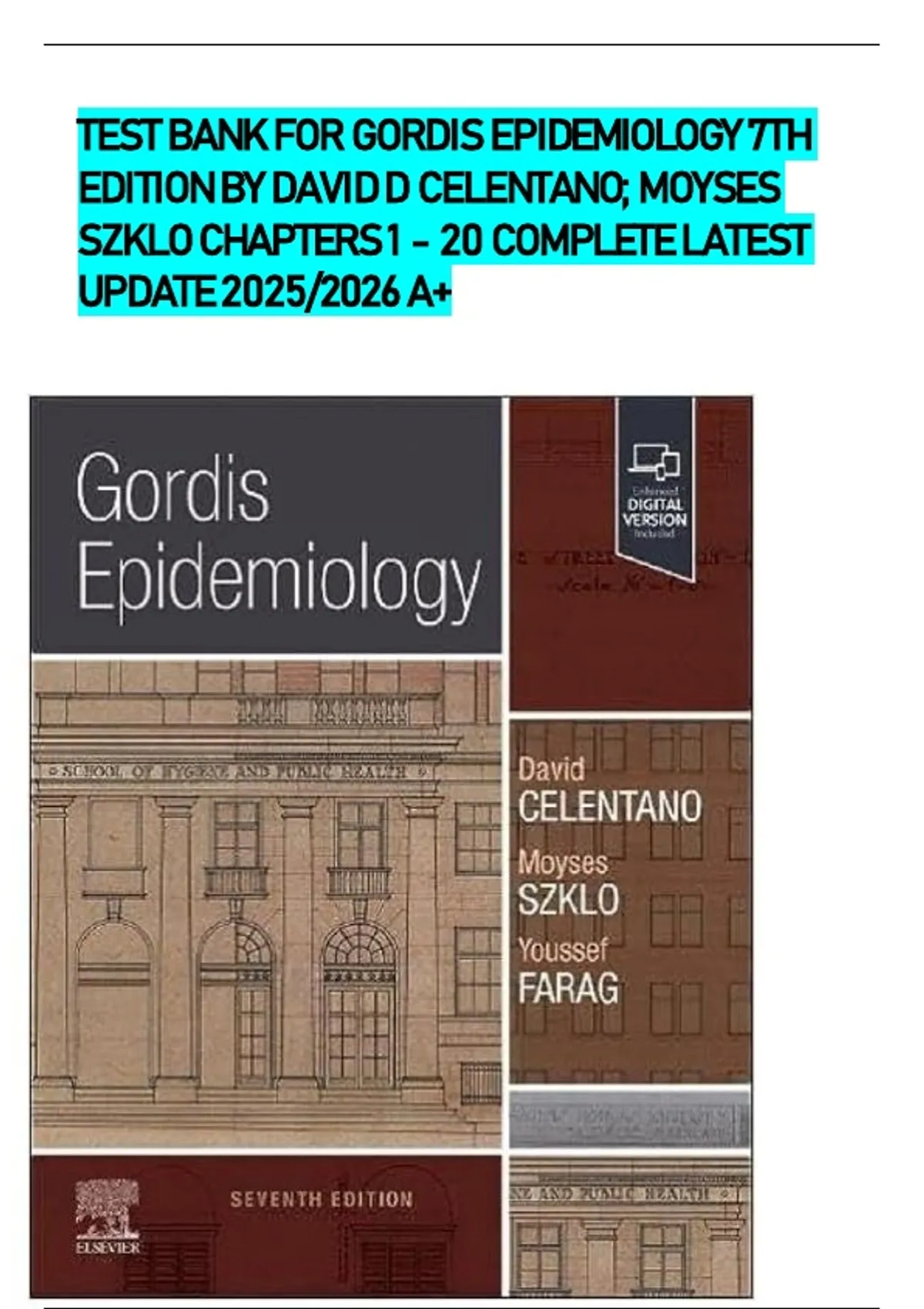 TEST BANK FOR GORDIS EPIDEMIOLOGY 7TH EDITION BY DAVID D CELENTANO; MOYSES SZKLO CHAPTERS 1 - 20 COMPLETE LATEST UPDATE 2025/2026 A+