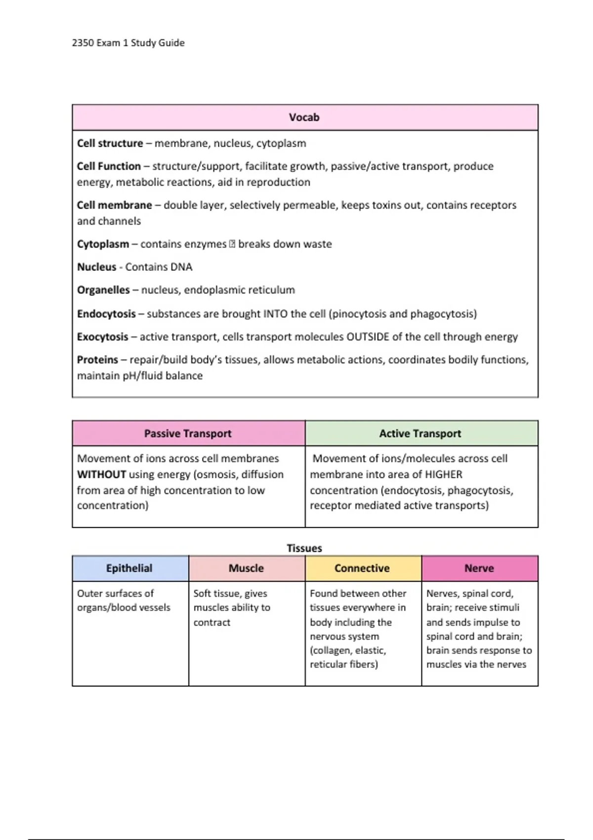 2350 Exam 1 Study Guide
