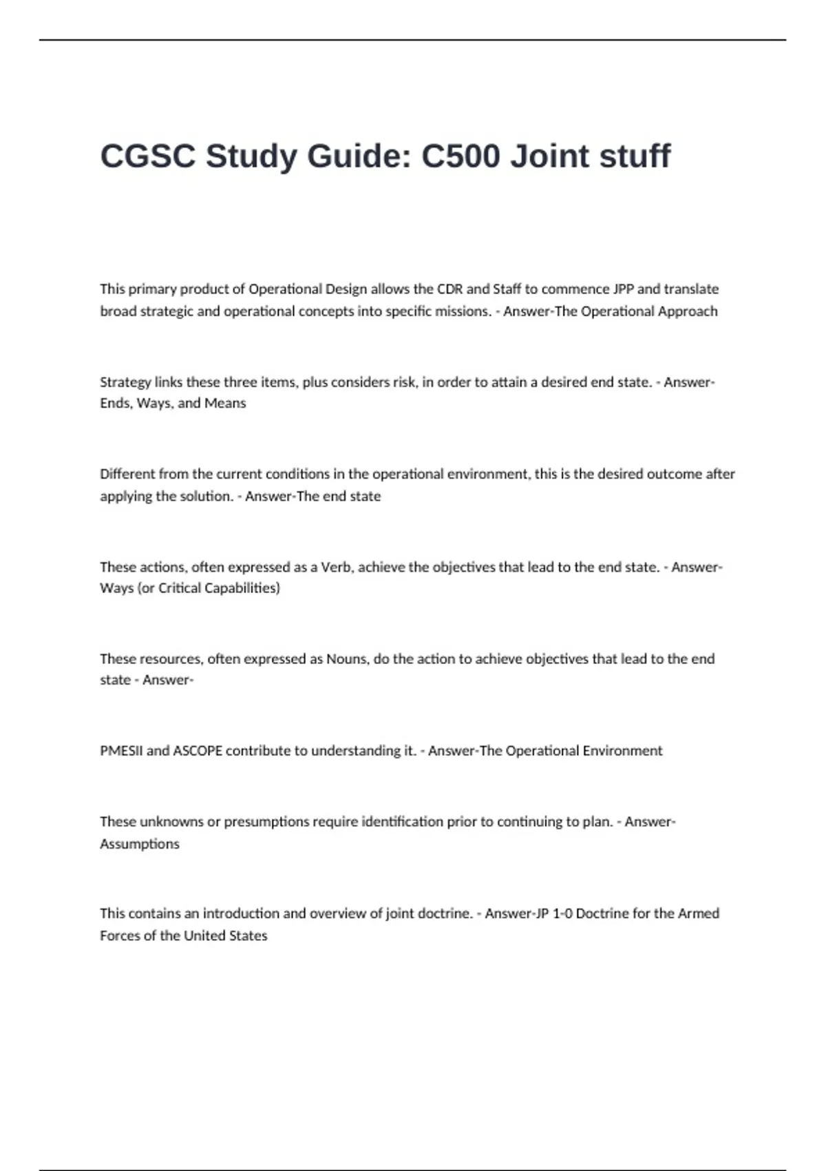 CGSC Study Guide Questions and Answers- C500 Joint stuff