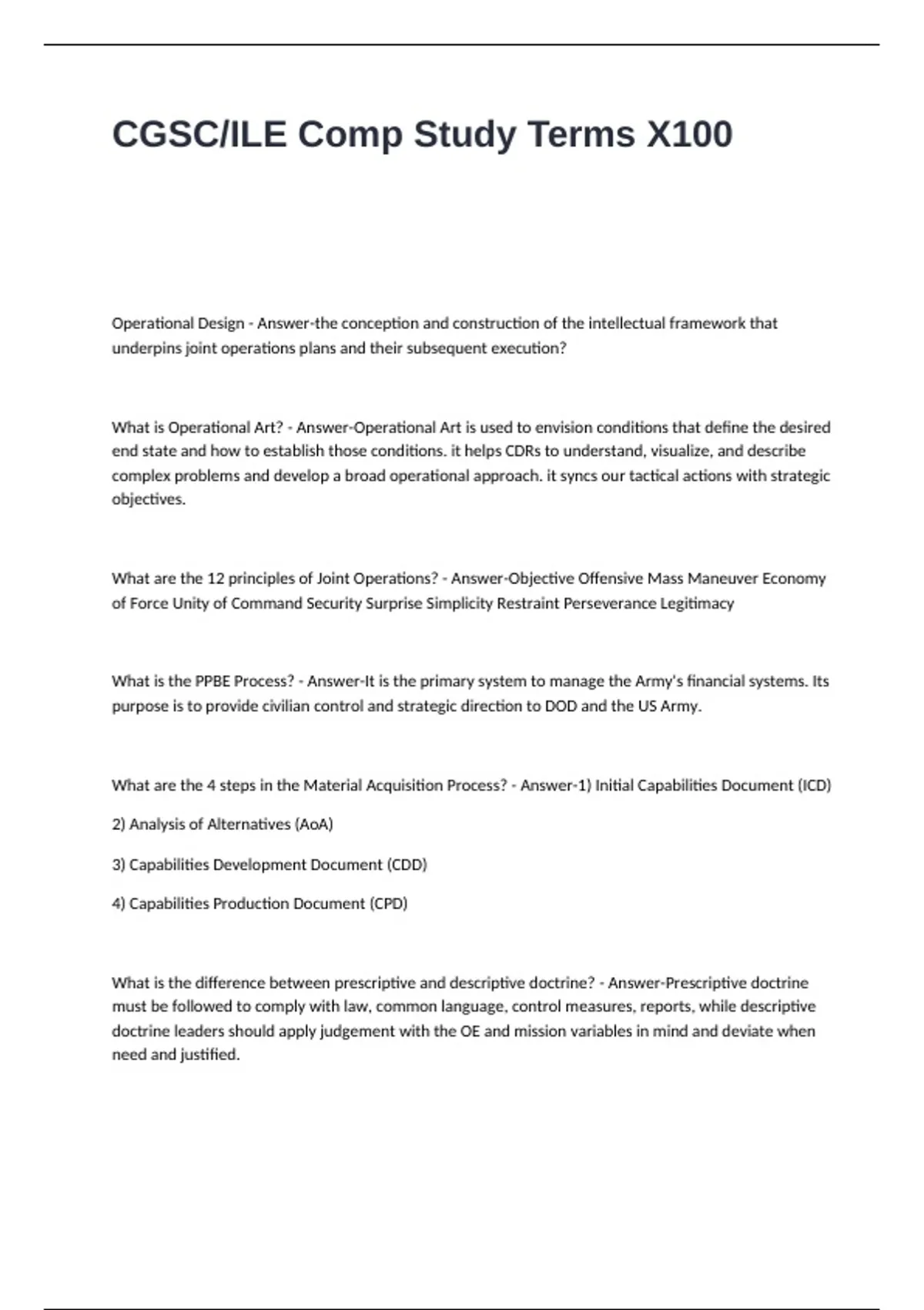CGSC/ILE Comp Study Terms X100