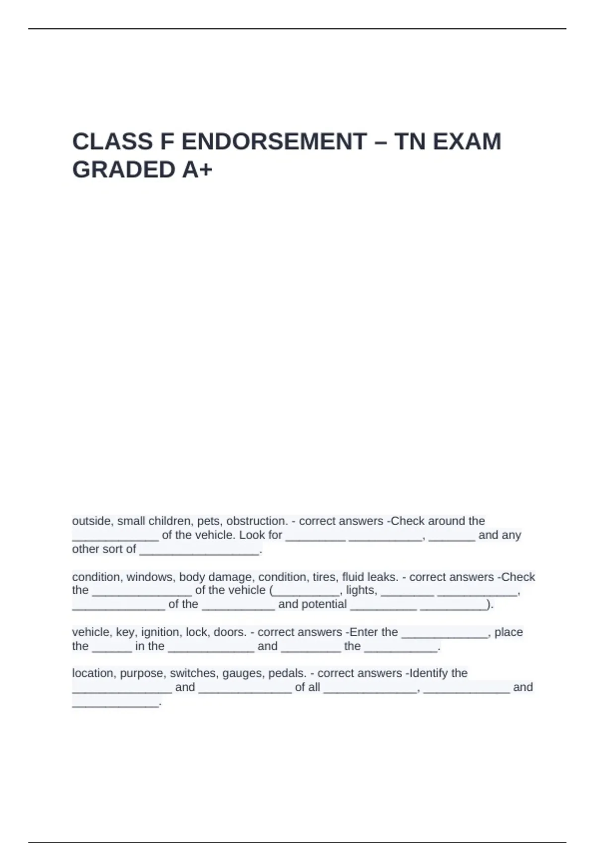 CLASS F ENDORSEMENT – TN EXAM