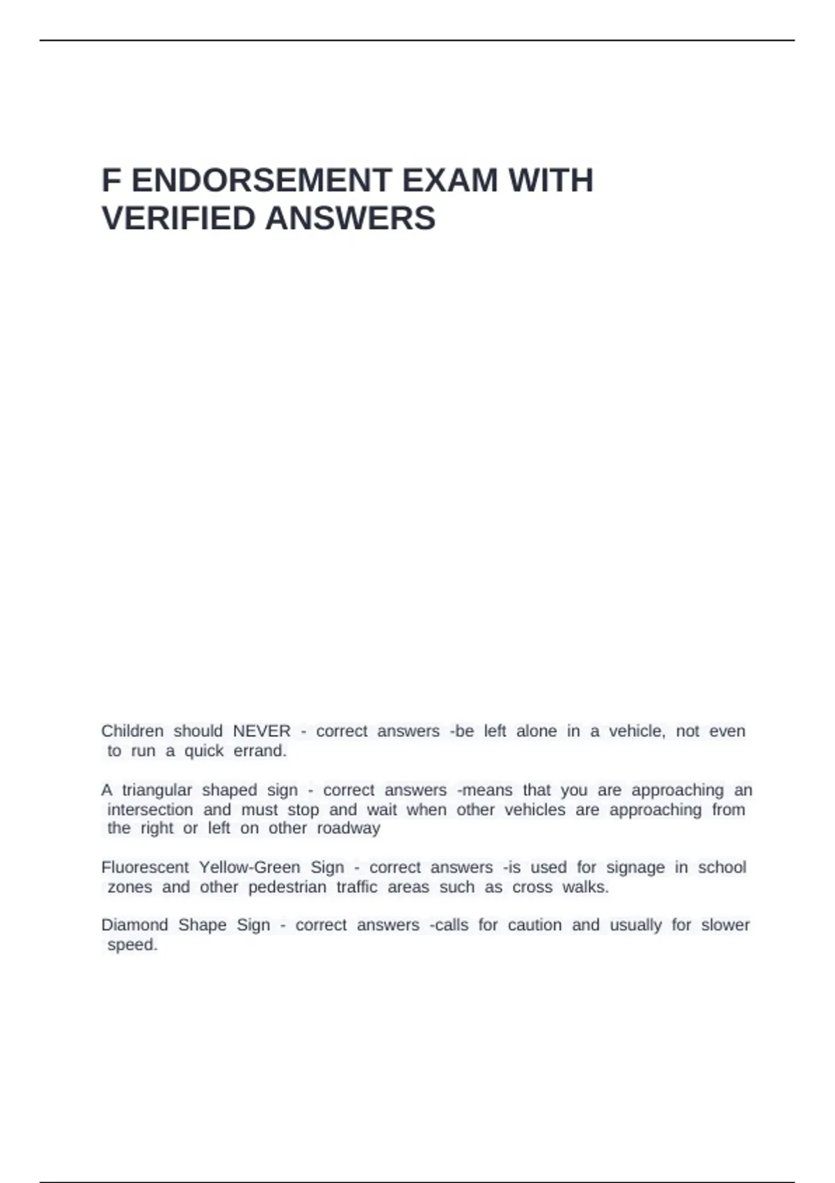 F ENDORSEMENT EXAM WITH VERIFIED ANSWERS