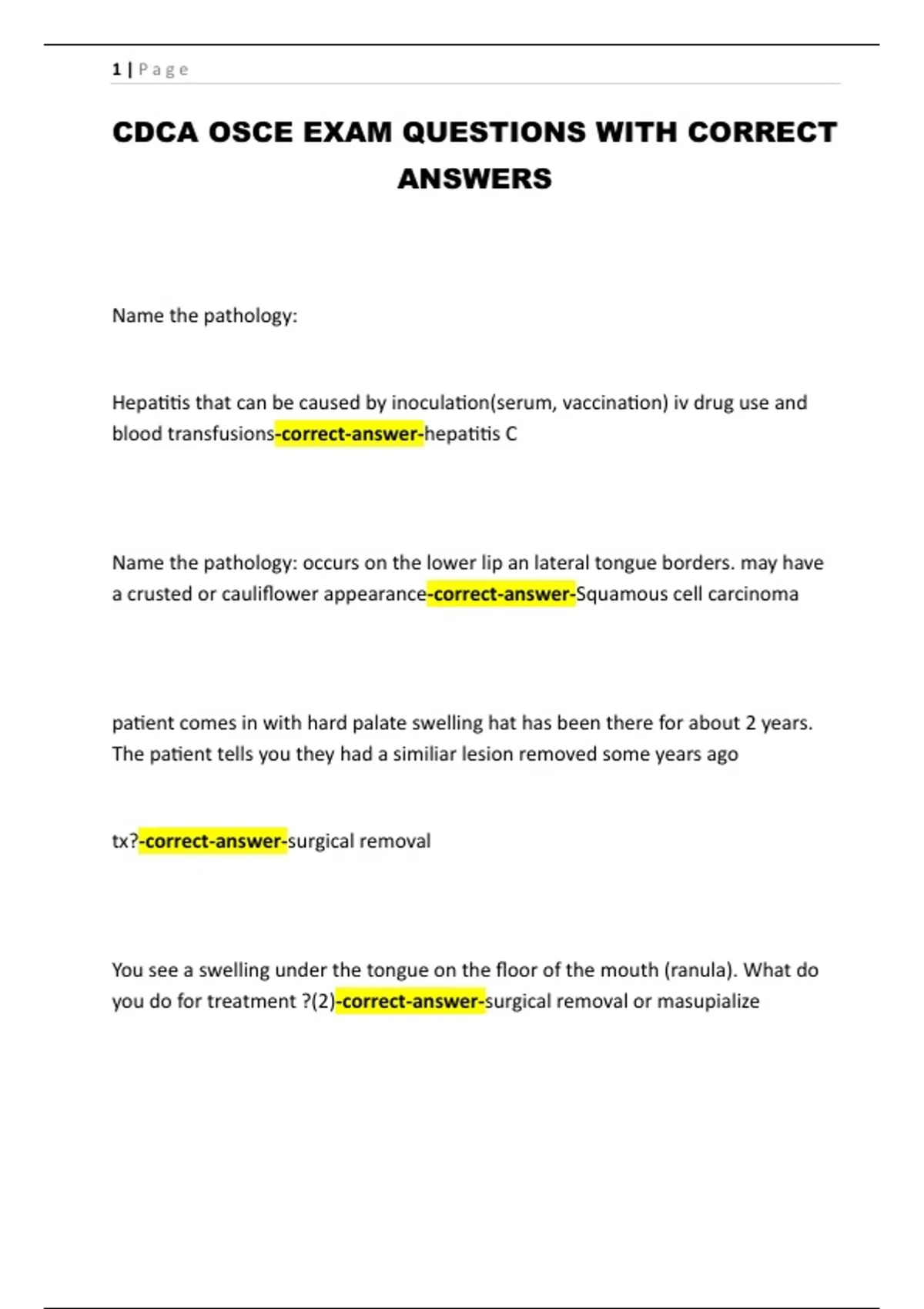 CDCA OSCE EXAM QUESTIONS WITH CORRECT