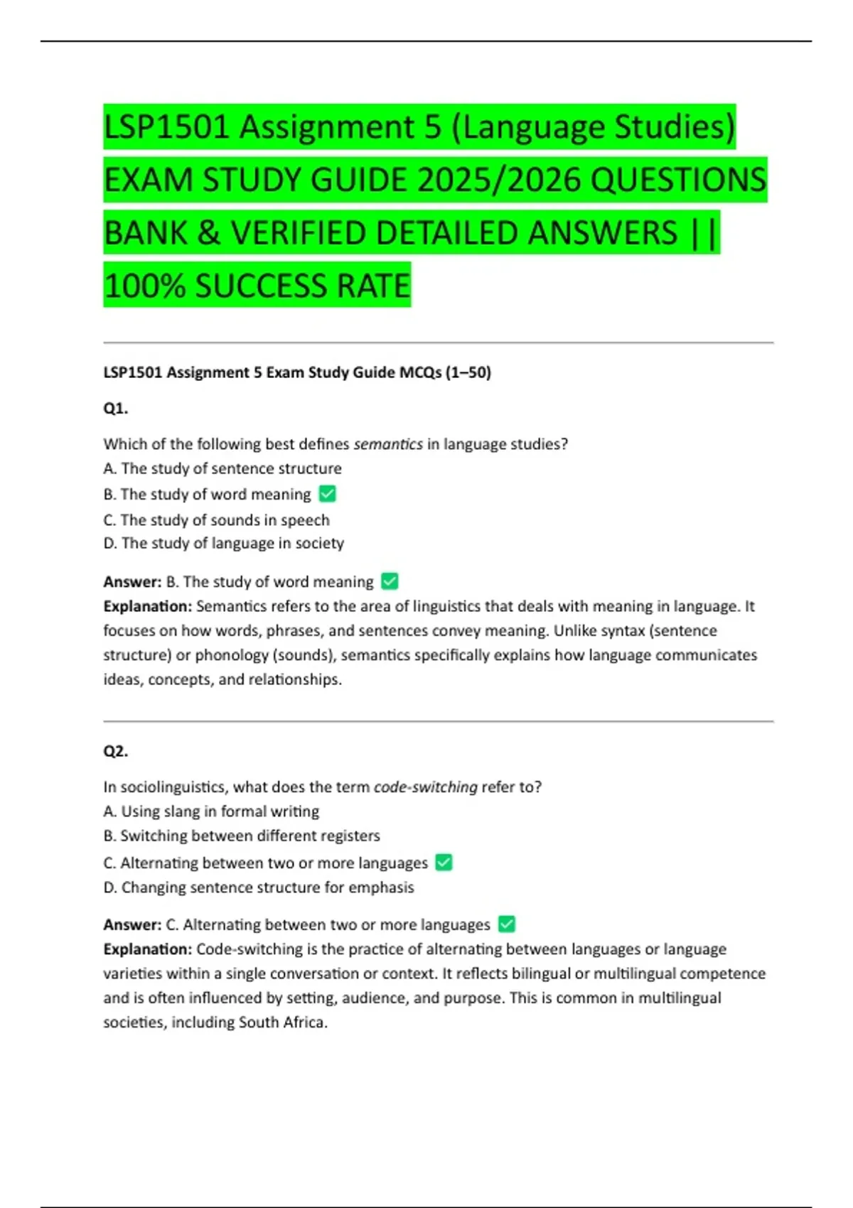 LSP1501 Assignment 5 Exam Study Guide MCQs (1–50)