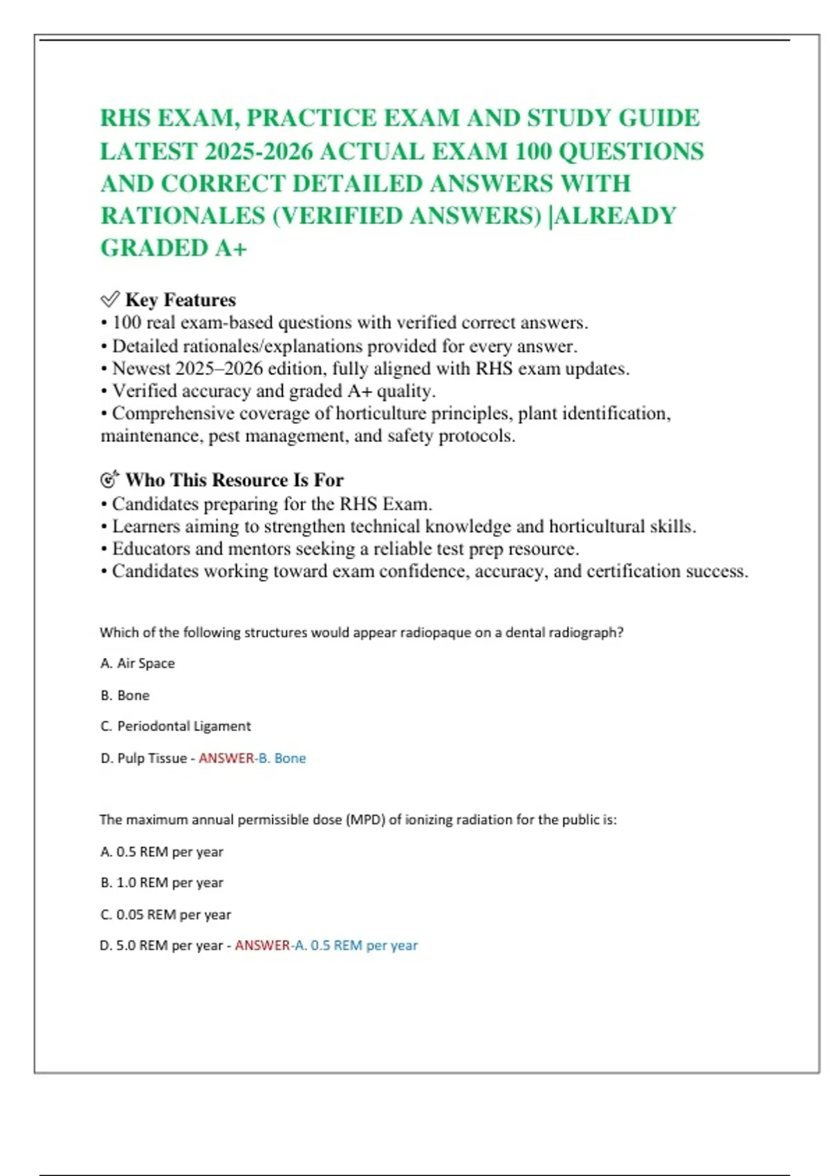 • 100 real exam-based questions with verified correct answers.