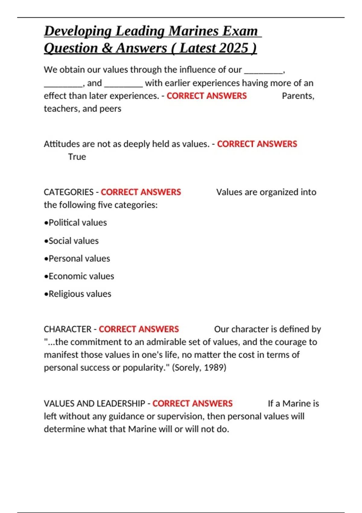 CATEGORIES - CORRECT ANSWERS ✔✔Values are organized into