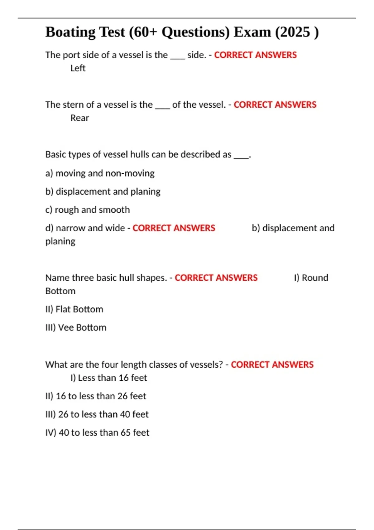 CORRECT ANSWERS ✔✔Inboard Vessels