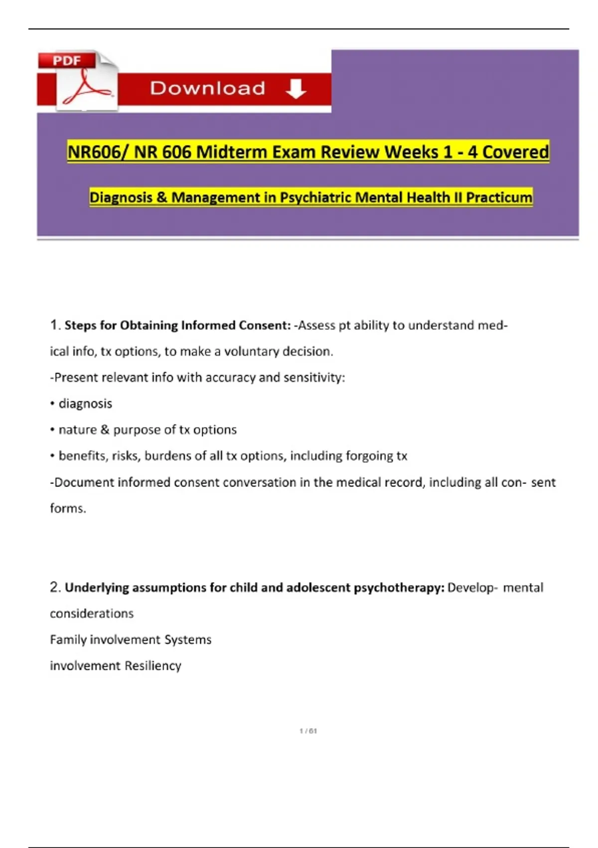 NR606 Midterm Exam Review: Psychiatric Mental Health Diagnosis & Management (Weeks 1–4)