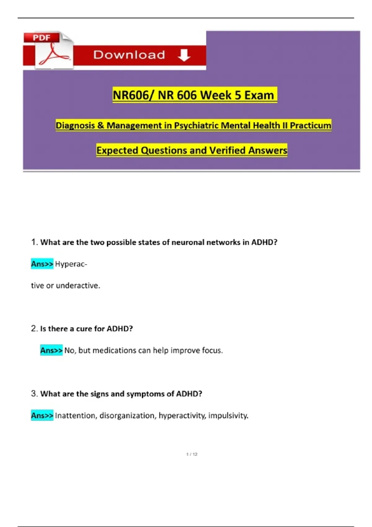 Prepare for your NR606 Week 5 Exam with verified answers on ADHD, ODD, conduct disorder, FASD, and pediatric behavioral interventions. Essential for PMHNP students.