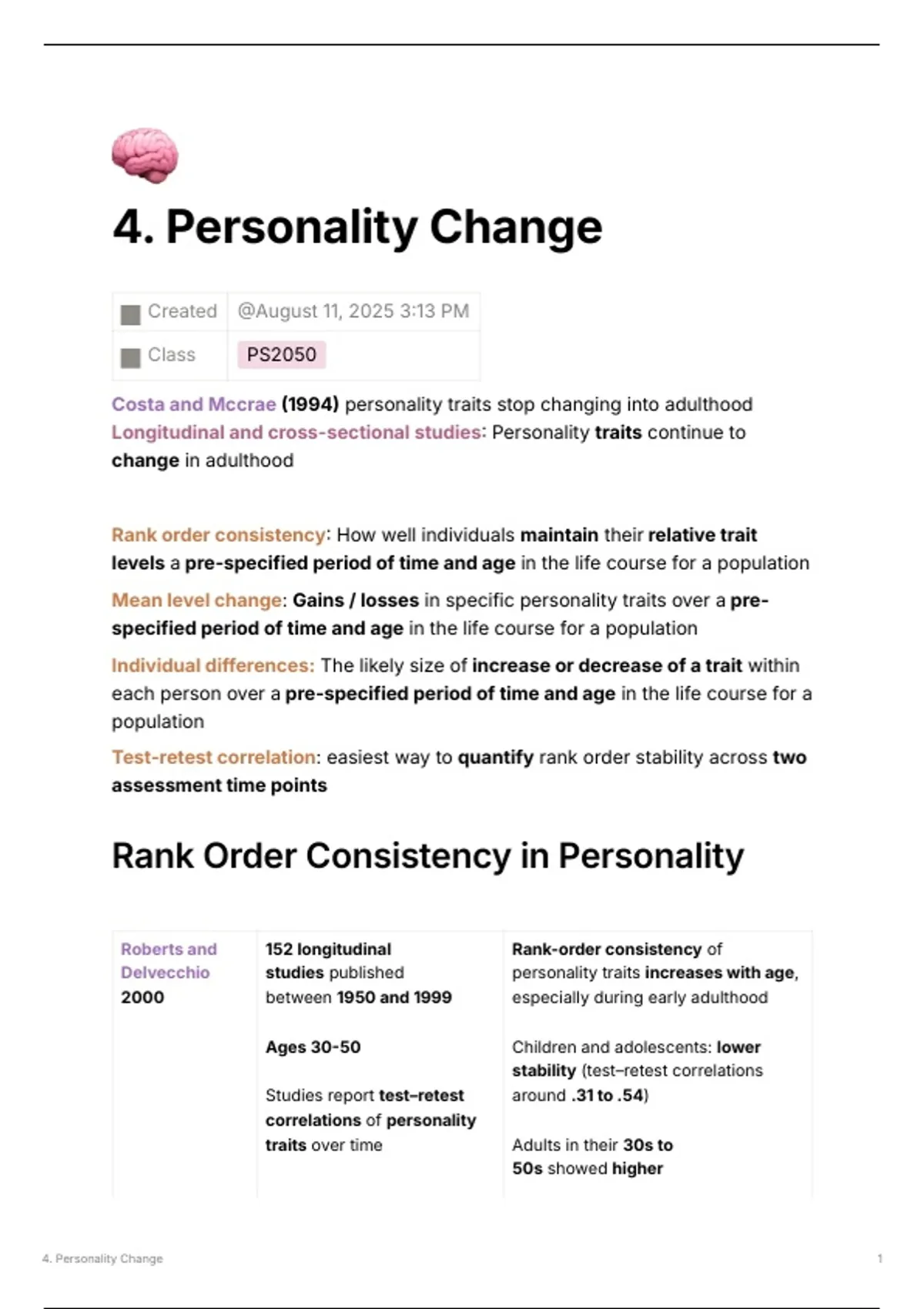 Longitudinal and cross-sectional studies: Personality traits continue to